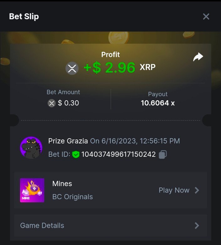12. https://bc.game/#/sd/118HH5163TOPAR I put exact $.1 xrp but when I scrnshot it went .09$ down. https://bc.game/#/sd/118HHLENDBL79V https://bc.game/#/sd/118HHU8TZASH03