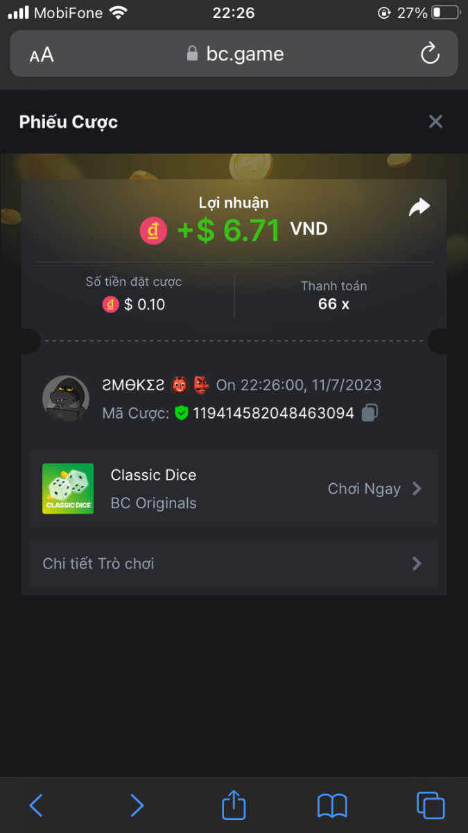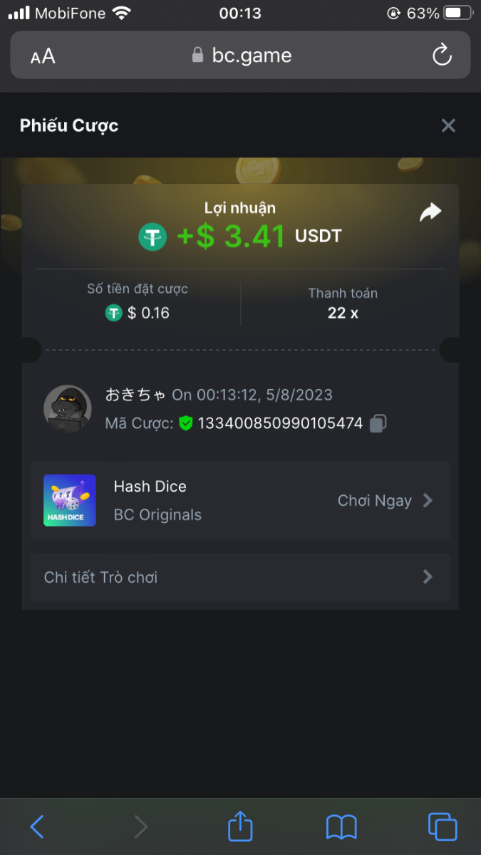 4. I've joined the forum event; Now it's your turn to win generous rewards from BC.GAME! Bet id : 2294427155662254197