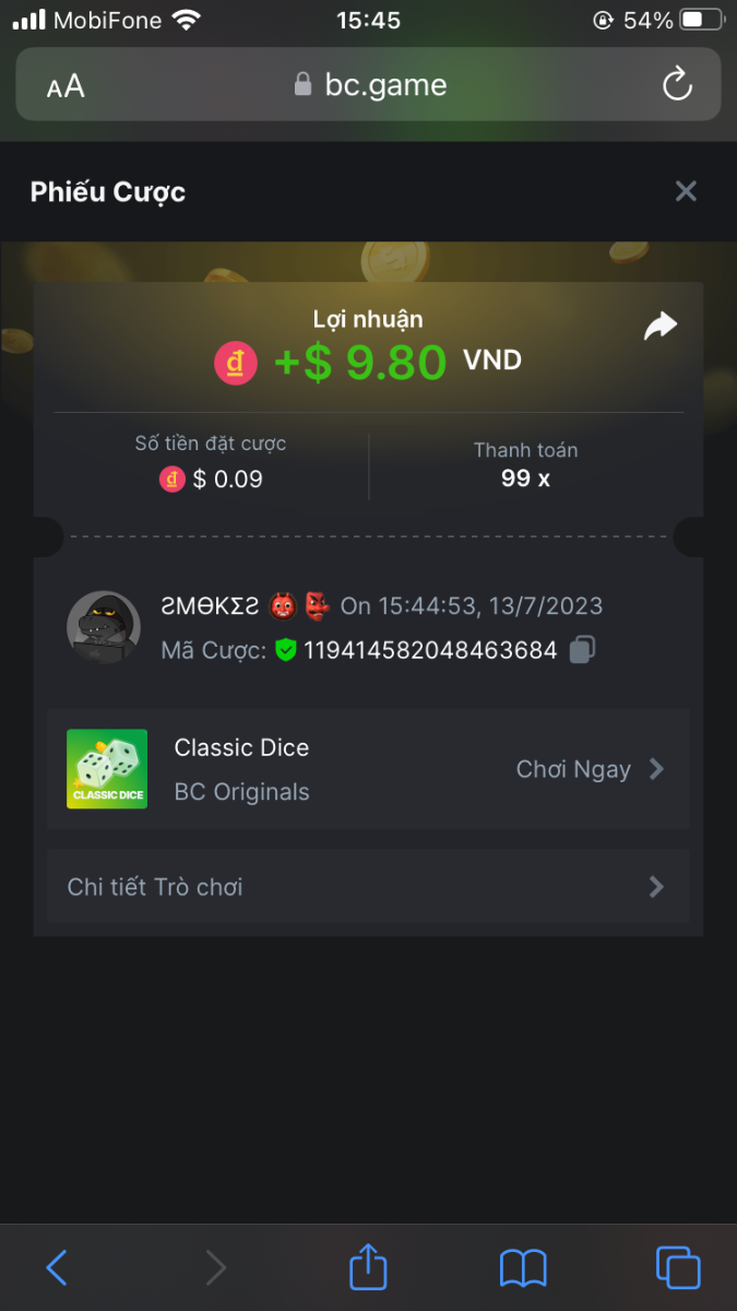 5. I've joined the forum event; Now it's your turn to win generous rewards from BC.GAME! Bet id : 2291914185115836550