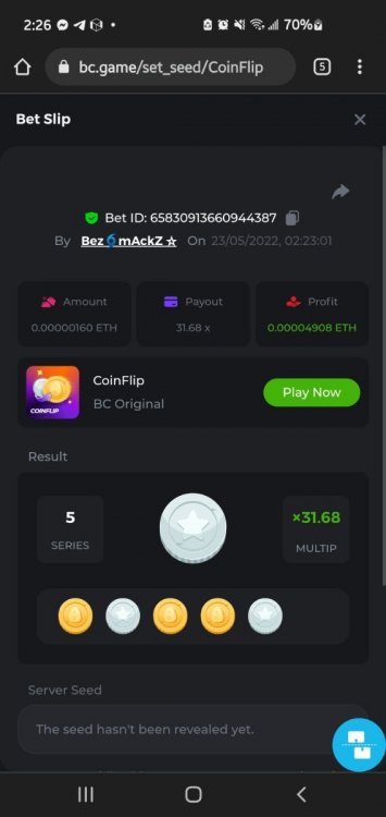 2. 65830913660944387 https://bc.game/set_seed/CoinFlip