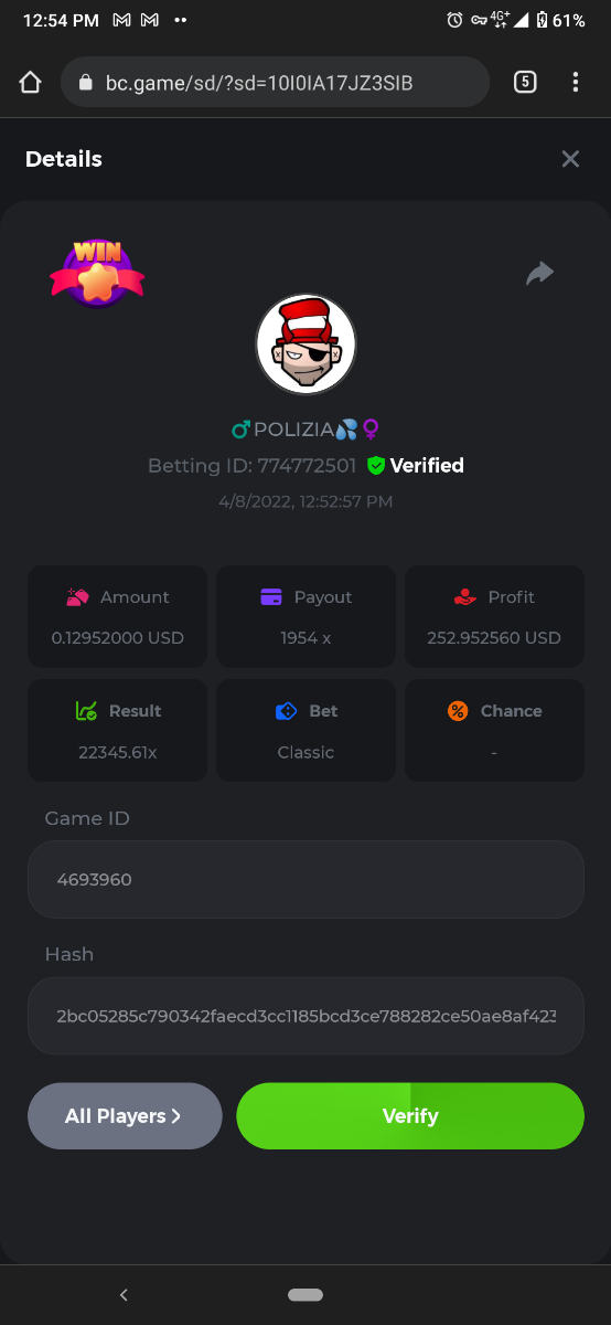 POLIZIA replied to BCGame_Maxim's topic in VIP Challenges