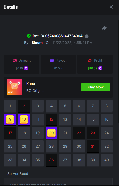 8. x506.88 multiplier + BOUNTY (9 or more) https://bc.game/#/sd/10VCFPOU65YKNN