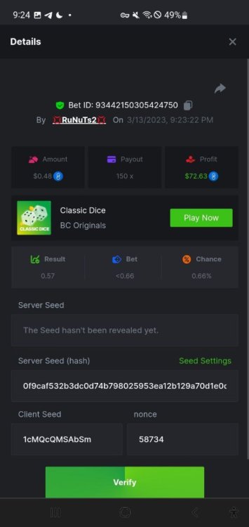 1. 16x | 26x | 27x | 29x | 33x | 37x | 43x | 56x | 58x | 76x | 83x | 88x | 110x | 120x | 130x | 170x | 260x | 420x | 620x | 1000x Some bets say 09 cents but showed $0.1 when I did the bet https://bc.game/#/sd/11FZ13ER2KDUZR https://bc.game/#/sd/11FZ1O7RLXAK9Z https://bc.game/#/sd/11FZ20E4G643PN https://bc.game/#/sd/11FZ2B9RQX25LV https://bc.game/#/sd/11G65L0NGEB7PN