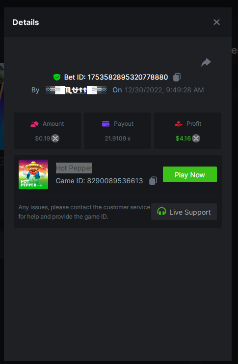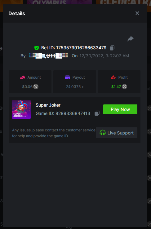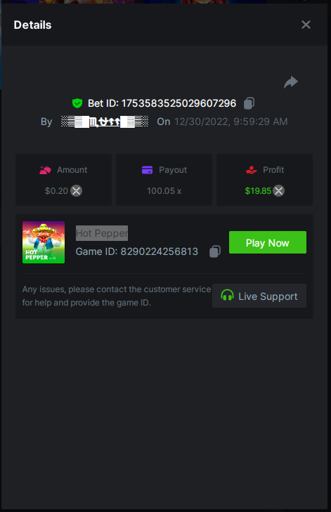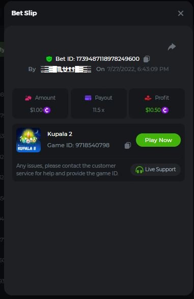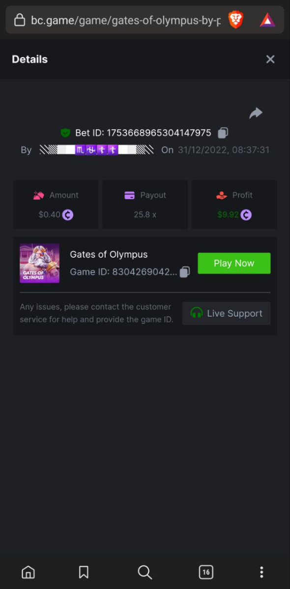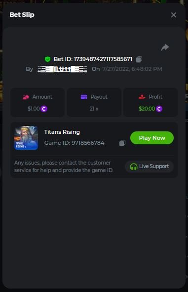 4. Super Joker 24.0375x @ $0.06 https://bc.game/#/sd/110AD5IRRHCQHF Bigger Bass Blizzard - Christmas Catch 50.020x @ $0.23 BOUNTY MULTIPLIER https://bc.game/#/sd/110ADW89D1CXLF Fury of Odin Megaway's 45.778x @ $0.25 https://bc.game/#/sd/110AEJWNS0IG43 Hot Pepper 100.05x @ $0.20 https://bc.game/#/sd/110AGM60GCZQ4Z Gates of Olympus 25.8x @ $0.40 https://bc.game/#/sd/110CSQ6V3XDNO3