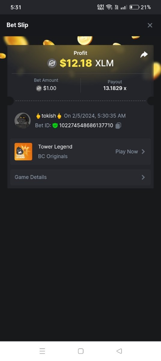 Beelucky replied to BCGame_Maxim's topic in VIP Challenges