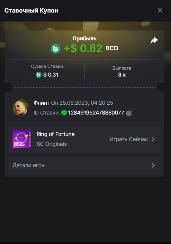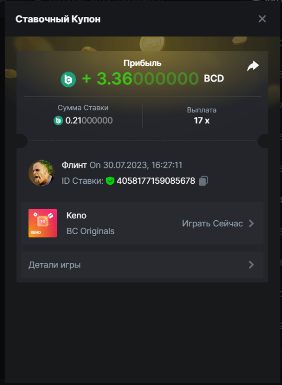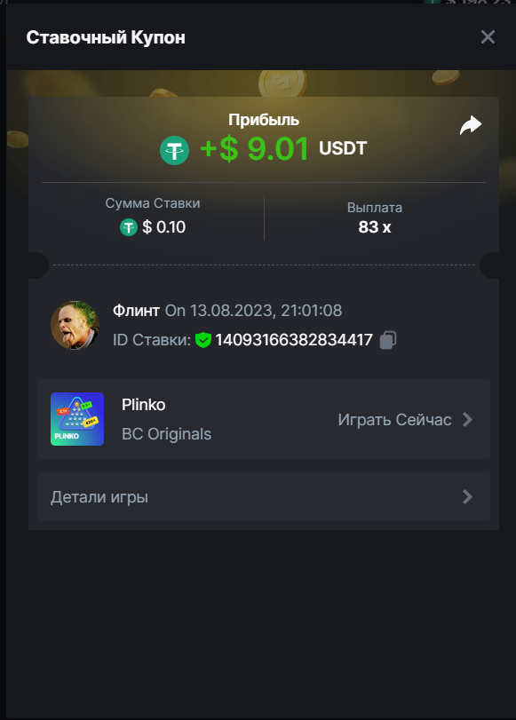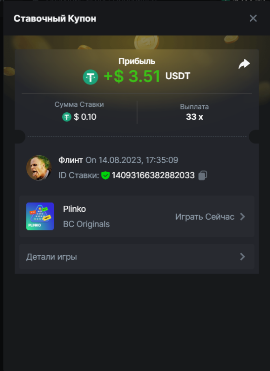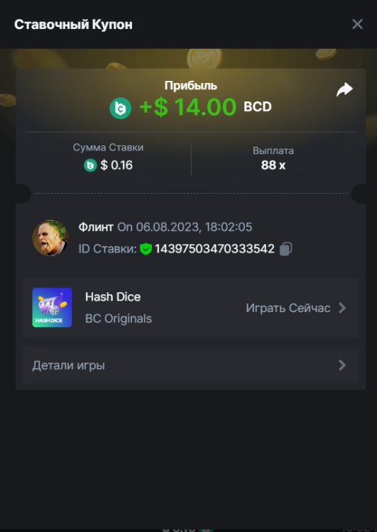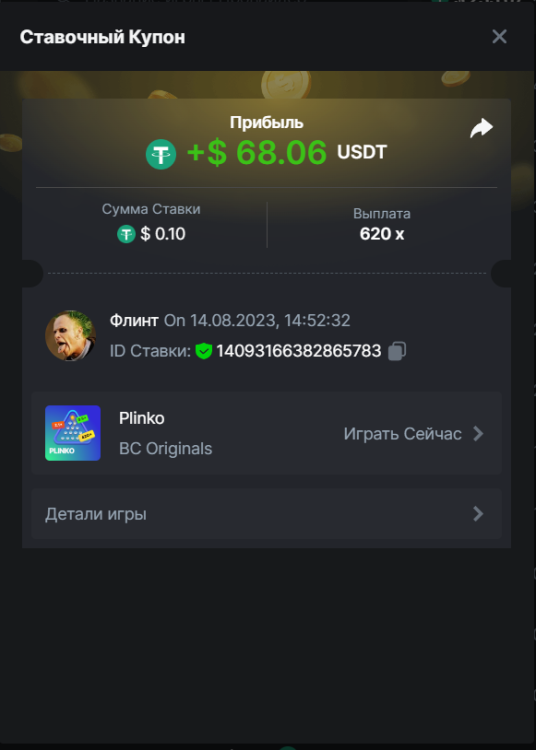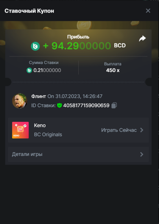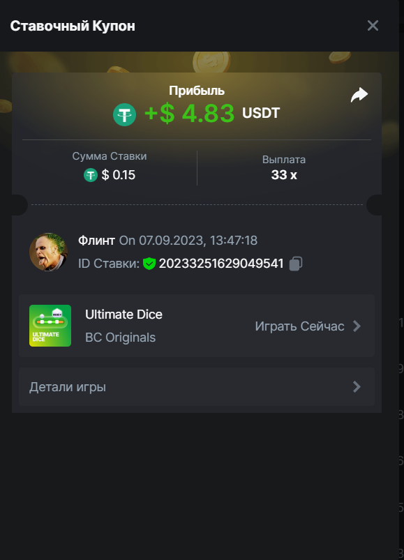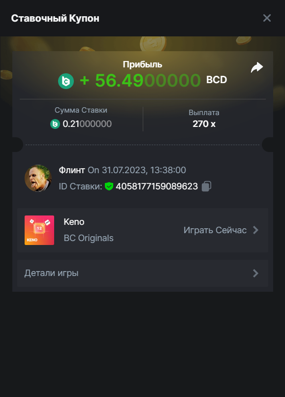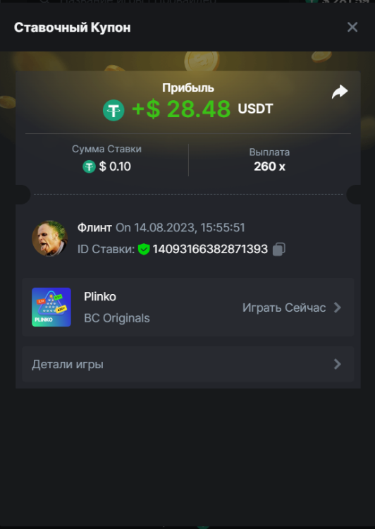 Флинт replied to BCGame_Maxim's topic in VIP Challenges