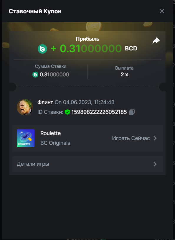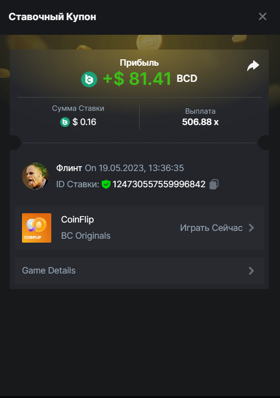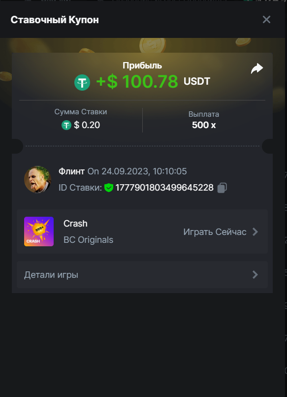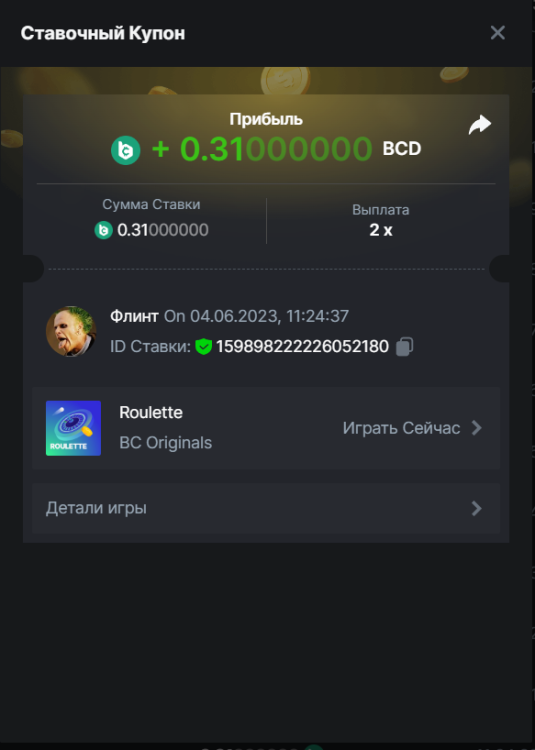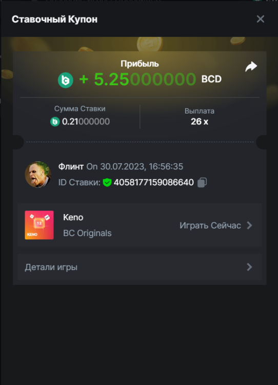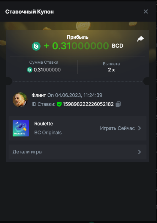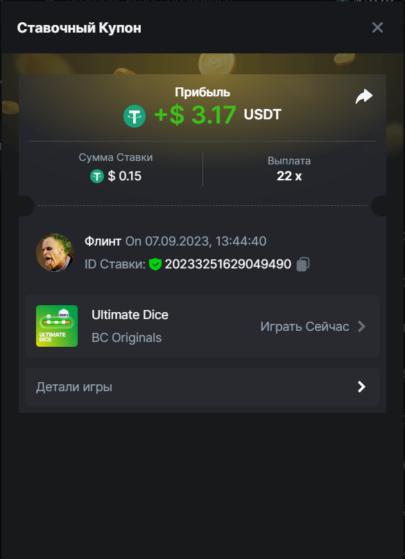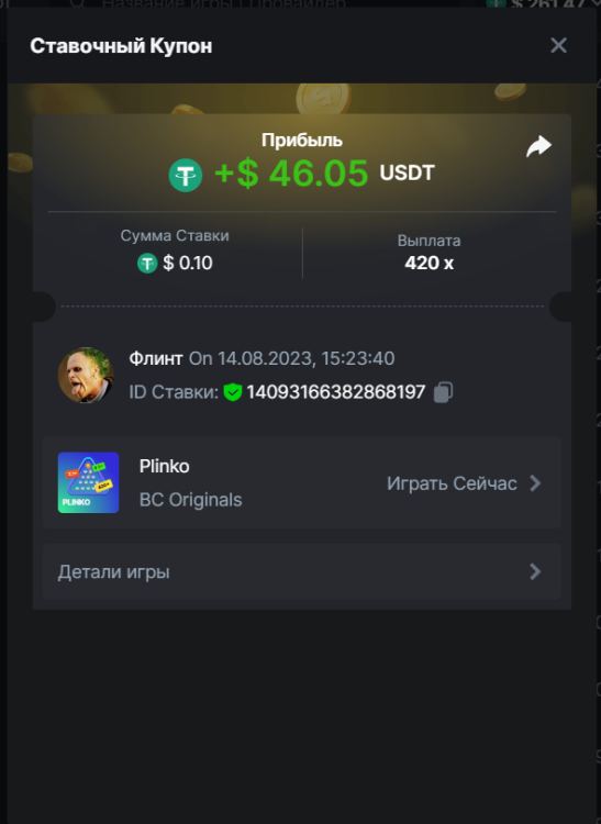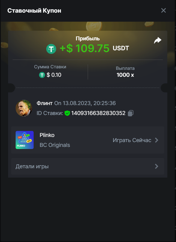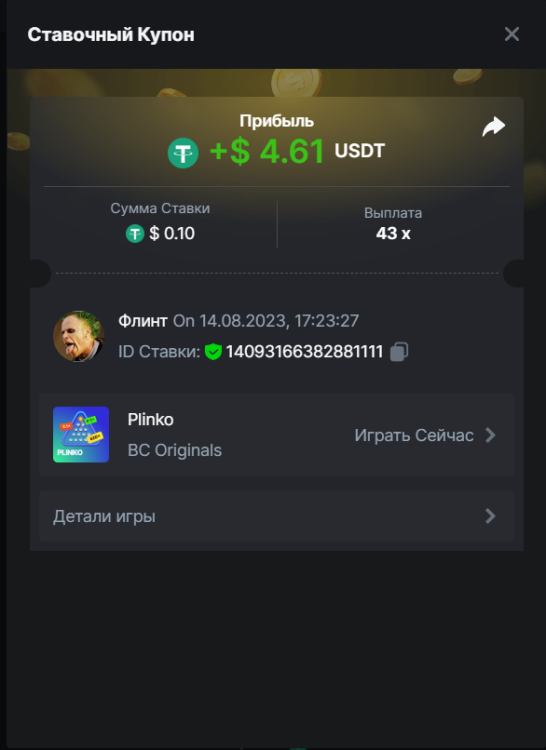 Флинт replied to BCGame_Maxim's topic in VIP Challenges