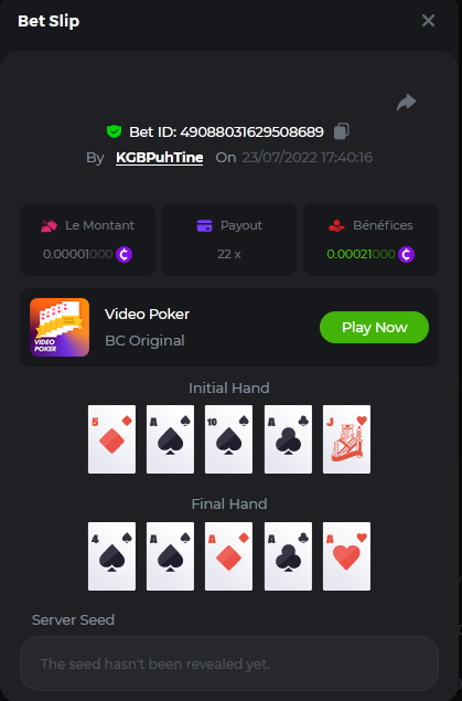 Member AkSyEn03 Posted July 25, 2022 Author Member Share Posted July 25, 2022 Challenge VIDEO POKER Alphonse X800CoinPumpGir Glorias - KGBPuhTine QCLoverman Guillaume493 Jasonguy Félicitation à tous Link to comment Share on other sites More sharing options...