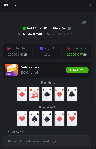 Member AkSyEn03 Posted July 23, 2022 Member Share Posted July 23, 2022 đ”ĂVĂNEMENTS DU WEEK-ENDđ”Uniquement pour la room FrançaiseDĂFI Heure de dĂ©but : 23/07/2022  à 13h. Heure de fin : 16h le 25/07/2022  week defi n'est ce pas merveilleux ^^ Quel est le dĂ©fi ? Jeu : VIDEO POKERAtteindre le plus HAUT MUTLIPLICATEUR  dans le jeu VIDEO POKER Minimum pour la qualification est de x 3 SI Ă©galitĂ© sur un multiplicateur , le filtre sĂ©lectionnera en 2Ă©me la somme et sera prise en compte .VIP minimal > Il n'y a pas de niveau VIP minimum.Pari minimum : 0.00003$   Attention JB est pris en compte ( Les mises en usd passe en premier ) RĂ©compenses12$7$4$4eme place Ă 10 -Ăšme place 1$ Si le nombre de joueurs augmente, le prix monte aussi !Conditions bonus : sans respect des conditions aucun gains ne sera remis !AccĂ©dez au jeu pour choisir votre ID de pari, cliquez sur l'icĂŽne Partager (â·) puis sur Copier le lien Dans le mĂȘme message, tĂ©lĂ©chargez une capture d'Ă©cran de votre gain en cliquant sur l'ID du jeu et En mode USD ON1. N'utilisez pas plusieurs comptes 2. Les paris soumis avant ou aprĂšs la date et l'heure limite ne seront pas acceptĂ©s 4. tout manquement au conditions de bonus, vera son paris annulĂ©. alors lisez bien avant de commencer et BC Game vous souhaite des moments heureux et profitablesBonne chance, que le meilleurs gagne !!  Link to comment Share on other sites More sharing options...