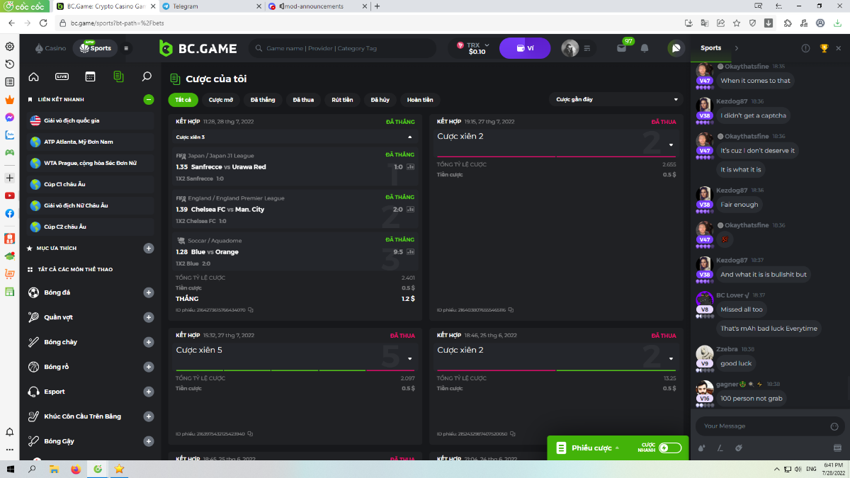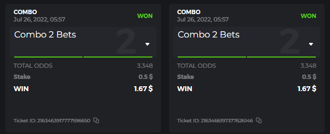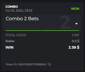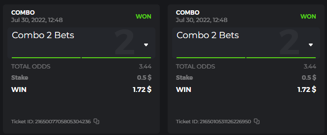 Moderator Mat Posted July 25, 2022 Moderator Share Posted July 25, 2022 $250 - BC.GAME SPORTS PARLAYS CHALLANGES #14 Start: 25, July 00:00 UTC Ends: 31, July 23:59 UTC Hello, ladies and gentleman! Sports Parlay Challenges #14! With a prize pool of $250, the Top 7 takes home a grand prize, and the remaining $60 will be split among all other entrants! What is the challenge? Place a Sports Parlay/Combo Bet to qualify for the challenge Only 1 parlay per match. A parlay consists of two or more sports bets on a single ticket with a higher multiplier. The ODDS for each game will be added up and counted as total points. Minimum VIP No Minimum VIP Level Minimum payment There is no minimum multiplier, however, only the top 5 winning parlay multipliers will win the grand prize! Minimum bet size Equivalent to US$ 0.50 Eligible currencies All cryptocurrencies are eligible (except JB) Rewards available 1st place.......$70 2nd place.....$50 3rd Place...... $30 4th Place...... $20 5th Place...... $10 6th Place...... $5 7th Place...... $5 The remaining $60 will be split among all other participants who meet the minimum requirements and minimum stake. How to enter: To participate, post your Ticket ID, along with your Parlay link, as a reply to this thread as follows: Link bet: https://bc.game/sports/?bt-path=%2F%3FbtBookingCode%3D561A9D1 + Ticket ID 2126602890796736992 If you don't know how to get your sports betting link, go here! Along with the screenshot of your accumulated ticket. Ticket ID 2126602890796736992 If a selection results in a void or push, the bet will remain eligible as long as it remains equal to or greater than a triple bet and meets the odds requirements. Bets withdrawn will not be counted. Hedging is strictly not allowed Please combine all your hits into a SINGLE post. Edit your existing post to get additional hits, don't create a new post. Bets must be placed during the time window specified above. This thread will automatically lock when the time period ends. One (1) entry per family. If someone finds multiple prizes, they will be disqualified from the challenge as well as all future challenges. Failure to follow the instructions will result in the cancellation of your submission. By entering this challenge, you acknowledge that BC.Game has final decision rights over results and placement. All prizes will be paid out in BCD within 72 hours of completing the challenge.. Link to comment Share on other sites More sharing options...