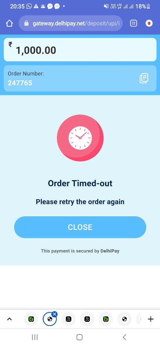 I am  facing some problem to deposit section . i successfully deposit Fiat currency INR 1000 and I place the order but my payment not add to my account .