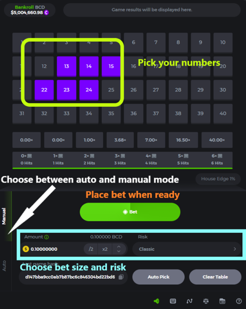 Creepybits Posted September 6, 2022 Share Posted September 6, 2022 Keno Single/Multiplayer The origins of Keno Keno is of Chinese origin and great antiquity, dating back at least 2,000 years. The original Chinese name for the game is baige piao or pai-ko p’iao, meaning “white pigeon ticket,” a reference to the tickets used in a betting game involving homing pigeons. From about the 3rd century BCE, baige piao games existed in most of the provinces of China, usually arranged by one or more gambling houses with the permission of the province governor, who in turn received a share of the profits. Modern-day Keno is usually played by picking from 1 up to 20 numbers out of 80, while online casinos more often let players choose from 1 to 10 numbers out of 40. How to play Keno at BC Game Select the betting amount and which risk you wish to play at. Pick between 1 and 10 numbers that you wish to bet on, or click on ”auto pick” (using auto pick will generate 10 random numbers). The ”Risk” setting determines how many correct numbers you need to win, and how much you can win. Six numbers at low risk. Six numbers at ”Classic” risk. Six numbers at medium risk. Six numbers at high risk. When you are satisfied with the settings, click on ”bet”. Ten random numbers will be generated, and if enough of them are the same numbers you picked you will win. Using Auto Bet As with most in-house games at BC Game, Keno has an auto-bet feature. To access the auto-bet settings, click on ”Auto” located above the bet amount. Keno Multiplayer At BC Game there is also a multiplayer version of Keno. The multiplayer version works the same as the single-player version does, with the exception that more than one person can bet at the same time. Link to comment Share on other sites More sharing options...