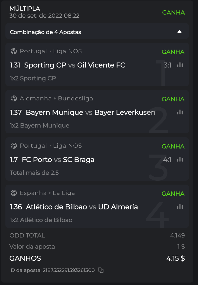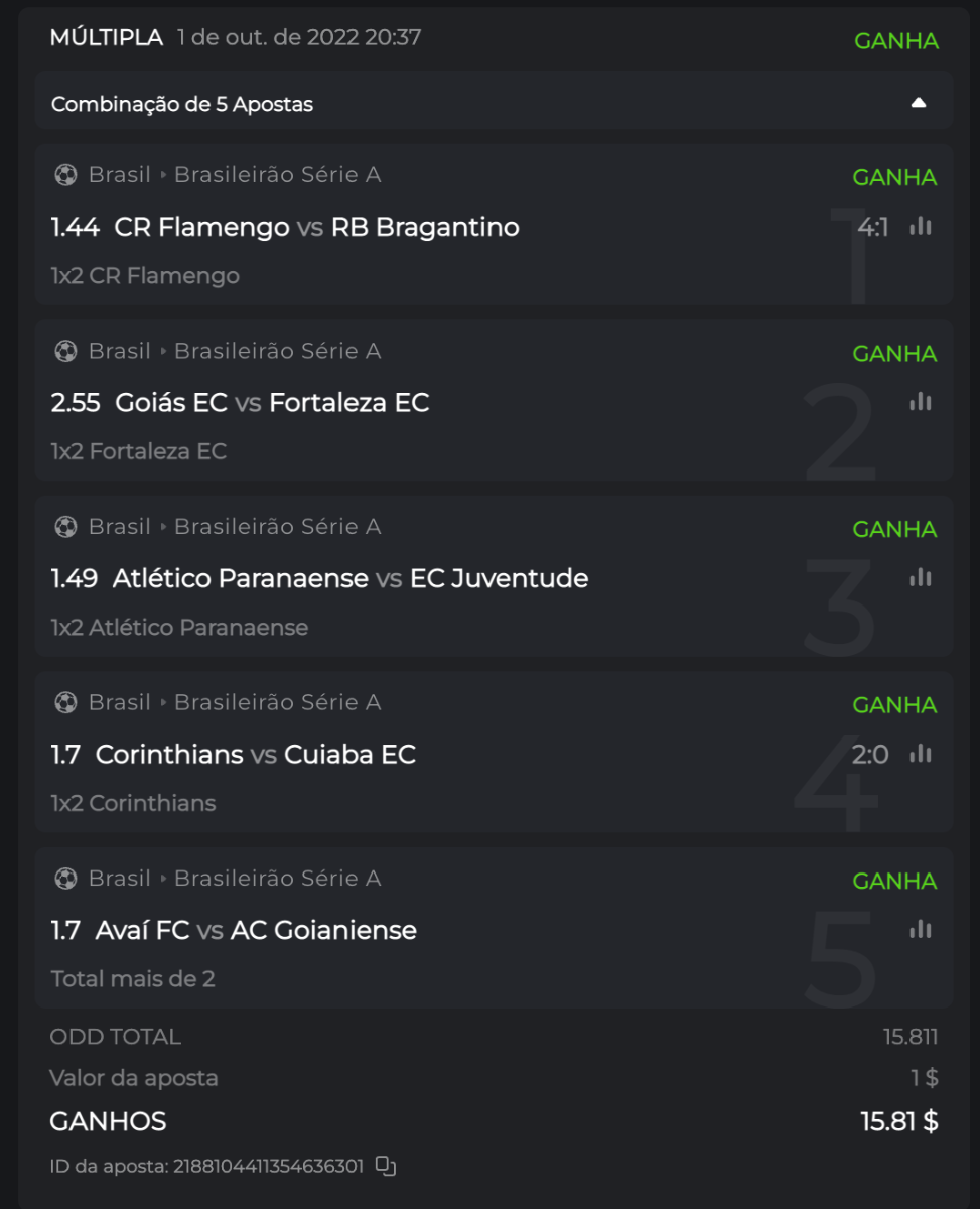Clemerson Posted October 2, 2022 Share Posted October 2, 2022 ID da aposta: 2187301371001319614 ID da aposta: 2187372851001171977 ID da aposta: 2188484346321711353 Link to comment Share on other sites More sharing options...