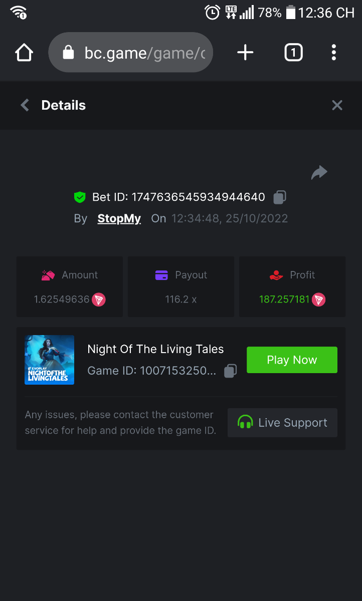 EMMAWILLS Posted October 25, 2022 Share Posted October 25, 2022 https://bc.game/#/sd/10VTN3L3FWKZYR Bet id- 192921355 Link to comment Share on other sites More sharing options...