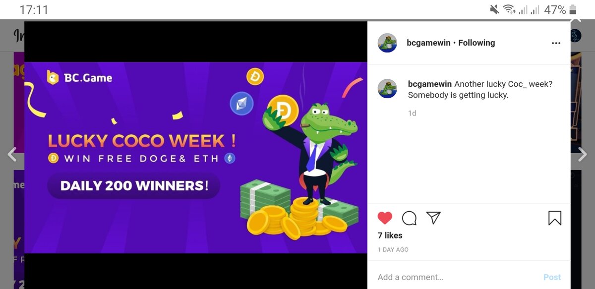 Coco_Father Posted June 2, 2020 Share Posted June 2, 2020 BC.Game is on Instagram Don't be fooled by our impersonators! https://www.instagram.com/bcgamewin/ is our official and our only Instagram account. Be sure to follow us and like some of our posts, too. Let us know here that you followed and hit that stupid heart button a few times and there MAY be some sweet rewards in it for you. Or..... You can do it because you are awesome and love us. Link to comment Share on other sites More sharing options...