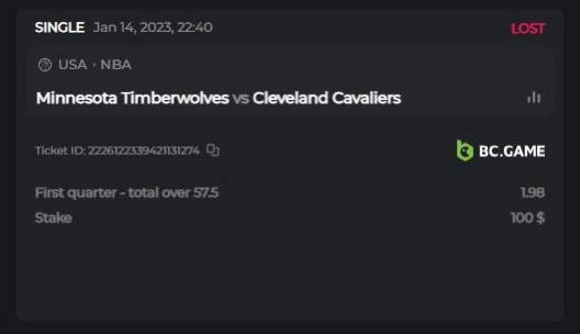 Event Team BCGame_Maxim Posted January 10, 2023 Event Team Share Posted January 10, 2023 Sports Guarantee 100% Cashback! #10 ________________ Starts: 11, January 01:00 PM UTC Ends: 18, January 12:59 PM UTC Dear BC Family!!! Enjoy our unique and fantastic guaranteed event—A Memorable, zero-risk chance to endeavour your betting instinct again. The opportunity is here, and luck in the match's odds, limited to the first 300 slots !!! First come first serve basis.. This time, we guarantee 100% cashback on your loss, up to US $100! Don’t miss this amazing chance! A chance to play zero-risk bet on the Specific NBA Match. Rules: Place a Pre-Match Bet on our Specific NBA Match and get a guaranteed 100% cashback if you lose! Place a single bet on any bet-market of your choice. Using a Free bet ticket to enter this event is non-acceptable. Only one(1) single bet per person is accepted. Bet result with “LOST” is valid to submit. For multiple valid ticket id submitted, only the highest amount will be entertained. Single bets only - Multis & Combo parlays are not acceptable. Hedging is strictly not allowed. 100% cashback, up to $100 ____________________________________________________ SELECTED MATCH TO BET Minnesota Timberwolves Cleveland Cavaliers Game Time: 15 Jan 1:00 am UTCMagic Link ____________________________________________________ Minimum VIP Minimum VIP 12 Level and above. Minimum Odds requirement Minimum odds 1.5 (European) and above. Minimum bet size Equivalent to US $5 Bet type Any Pre-match Bet Type with “LOST” outcome Live/Pre-match Pre-match only Eligible currencies All cryptocurrencies are eligible (except JB,BCL) How to Participate : Post your Ticket ID, along with your ticket id & screenshot, as a reply to this thread as follows. Providing the bet link is not mandatory. Example for reference : Ticket ID: 2222136272049279484 The ticket ID will not be counted if the selected match results in a void or postponement. If the selected match is canceled or postponement, the round of this event will be canceled. Cashed-out bets are not eligible. Hedging is strictly not allowed. Bets must be placed & settled during the time window specified above. This thread will automatically lock when the event time ends. One (1) entry per family. If someone attempts to claim multiple prizes, they will be disqualified from the challenge as well as all future challenges. This may also result in account termination. Failure to follow the instructions will result in the cancellation of your submission. By entering this challenge, you acknowledge that BC.GAME has final decision rights over results and placement. Cashback will be paid within 48 hours after event on forum finish in BCD for bets placed in crypto currency and in fiat currency for bets placed using fiats up to a maximum of $100. Good Luck everyone! Link to comment Share on other sites More sharing options...