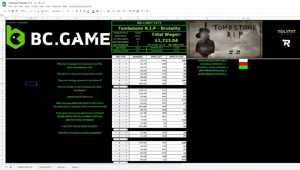 just want to share my simple tracker that i use to keep track of my bonus round statistics. its setup for tombstone RIP, but can be used for almost any game with no modifications. its fairly simple to use but if you have any questions. fire away.