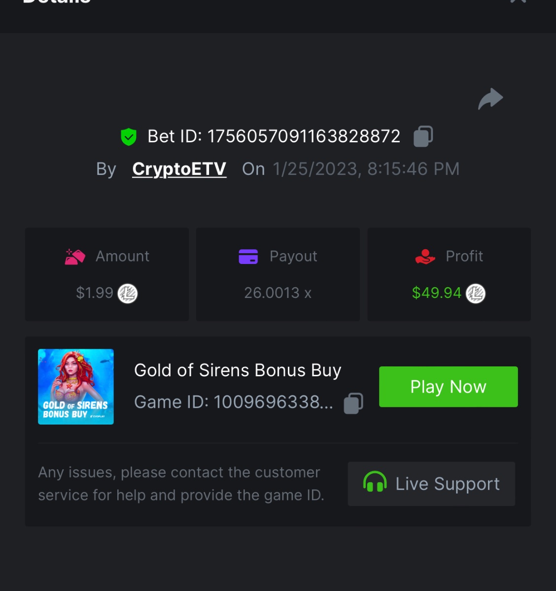 Saaho2022 Posted January 26, 2023 Share Posted January 26, 2023 Hot Triple Sevens Special - 71.0711xhttps://bc.game/#/sd/11267415LAZMDV Rueda De Chile Bonus Buy - 55.0551 https://bc.game/#/sd/11267I6PGN9YJ7 Patrick's Magic Field - 10.391x https://bc.game/#/sd/11267PK2O43383 Juicy Gems Bonus Buy - 31.031x https://bc.game/#/sd/112681G66MJV9V Inner Fire Bonus Buy - 28.9278x https://bc.game/#/sd/11268FS68L9IJ7 Hot Volcano Bonus Buy - 53.0531 https://bc.game/#/sd/1126AIG6Q1CKYB Gold of Sirens Bonus Buy 30.3303x https://bc.game/#/sd/1126AV2TWEJLLF Link to comment Share on other sites More sharing options...