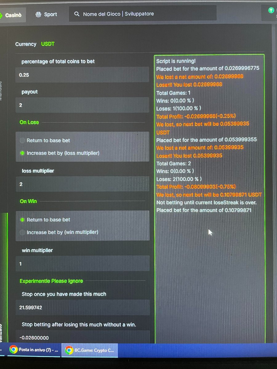 but let me save you some money and avoid using it, I tried a handful of times and never manage to double my balance, that pattern of cutting losses every two losses is not such a good strategy, it could work maybe in the beginning if you are lucky.