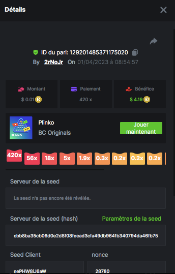 Complétez autant des 17 paiements suivants sur Plinko. Doit être un multiplicateur exact.