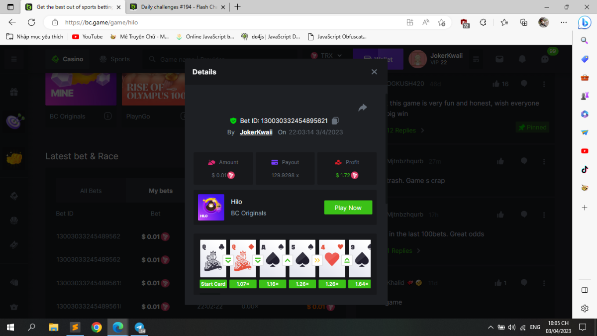 Maksypro Posted April 3, 2023 Share Posted April 3, 2023 (edited) Read Carefully Before Start To Hunt Daily Challenges #194 HI-LO Hunt : Win the highest multiplier Min Payout requirement X100 Min Level 4 ️Duration Starting : Now End time : 23.59 UTC Time How to Join? Make screenshot + paste your bet link + UID or Profile link Mini bet amount - 0.01$ Any coin allowed Reward Prizes 1st Place.....$7 BCD 2nd Place.....$5 BCD 3rd Place.....$4 BCD 4th Place.....$3 BCD 5th Place.....$2 BCD 🏵 Winners will be announcing next day after Roll Point! Edited April 3, 2023 by Maksypro Link to comment Share on other sites More sharing options...
