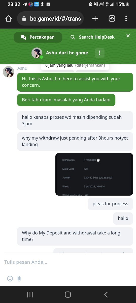 Saya benar2 bingung kenapa penarikan saya dari jam 16.00 sampai 03.25 belum juga diproses,support live tidak memberi tanggapan apapun,akun telegram saya juga diblokir,dimana ksalahan saya?saya menang taruhan dan saya hanya ingin menarik uang saya tetapi kalian tahan tanpa informasi apapun..apa urusannya jika saya lama tidak bermain disitus?apa hubungan kemenangan taruhan dengan depo saya yang receh??apa masalah anda jika saya menang dan ingin menarik saldo saya dan berhenti permainan karena modal saya bahkan hanya 10ribu rupiah yang mana sebelumnya juga sama dan tidak pernah ada masalah dalam penarikan,hanya karena lama tidak main dan dapat kemenangan yang cuma 320ribu anda sudah melakukan kecurangan dengan tidak mau membayar,sedang itu hak saya mau main di bc game atau situs lain,kami player fair jika kalah tapi kalian curang jika kami menang,dan tidak ada kejelasan karena cs live support semua mati ,apa urusan anda jika depo saya kecil dan saya beruntung menang taruhan???jawab kenapa anda menahan penarikan saya??tidak berhasil juga tidak gagal..apakah bc game bangkrut dan sudah scam??sampai bayar player yang ngga seberapa juga tidak mampu,sedangkan yang menang puluhan juta pun kalian bayarkan
