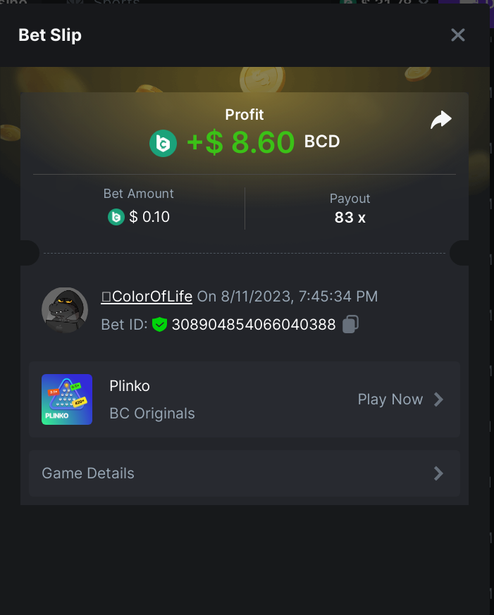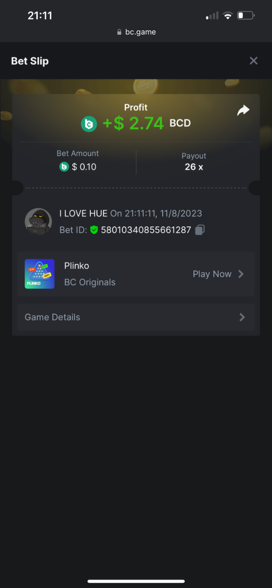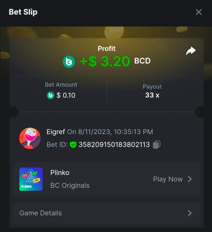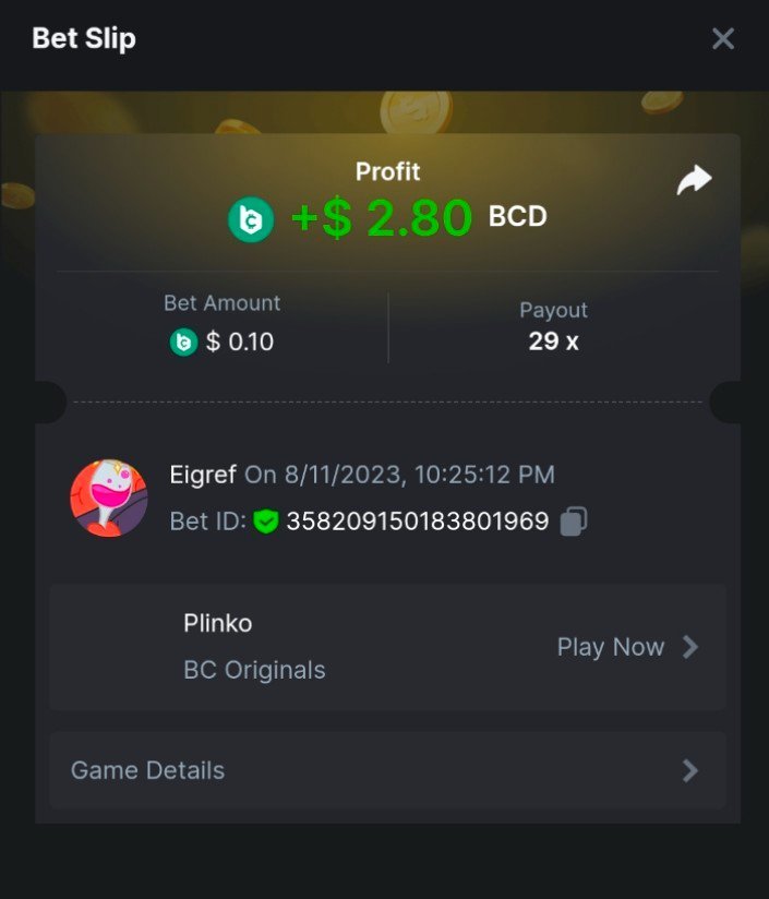 29x 0.10 $ - https://bc.game/#/sd/11FR9C0J6W76Q3 -   Bet ID: 138896824286052434