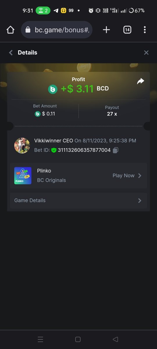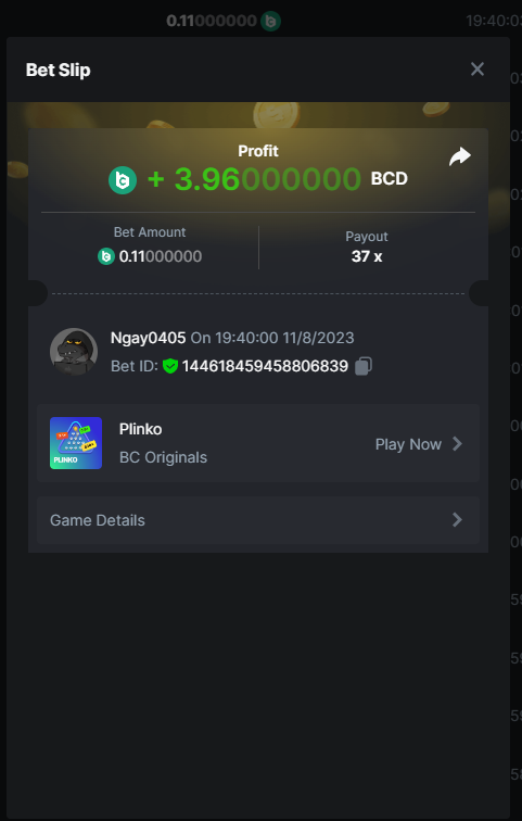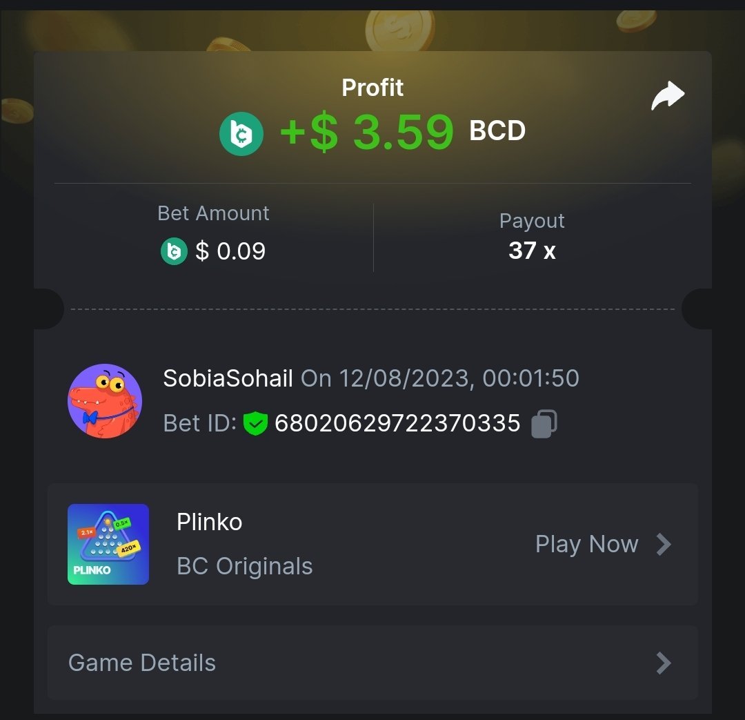 37x 0.10 $ - https://bc.game/#/sd/11FRQ6OODH66ZN - Bet ID: 138896824286060553