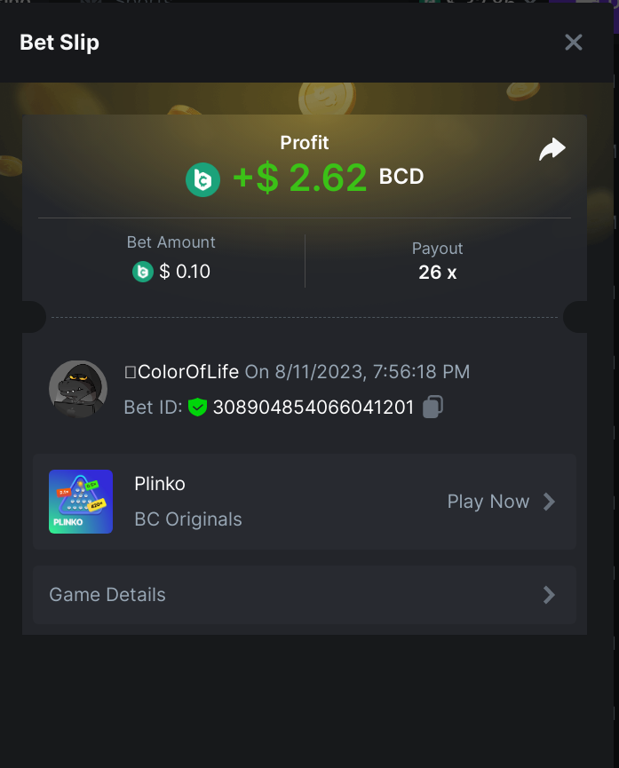 26x 0.10 $ - https://bc.game/#/sd/11FRP390V17TGJ -  Bet ID: 138896824286060144