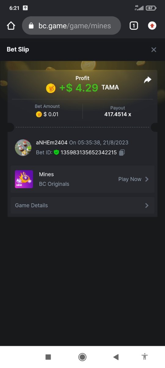 Provablefair Posted August 20, 2023 Share Posted August 20, 2023 (edited) userid 1173071 37.9466x https://bc.game/#/sd/11GCXFGZ0RMHPJ - betid: 365214525311418671 59.6293x https://bc.game/#/sd/11GCXZD31L6ODF - betid: 365214525311418754 Edited August 20, 2023 by Provablefair Link to comment Share on other sites More sharing options...