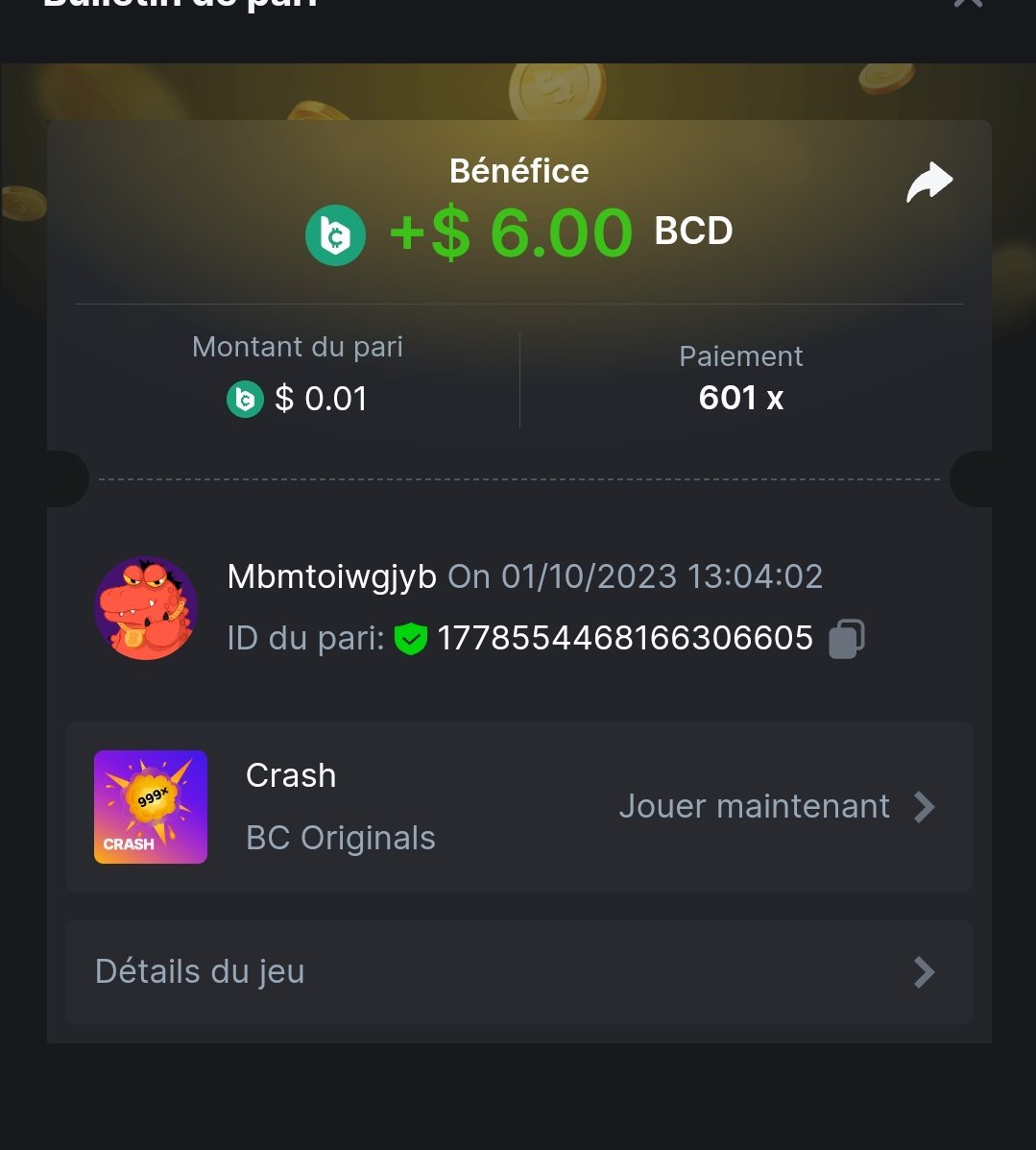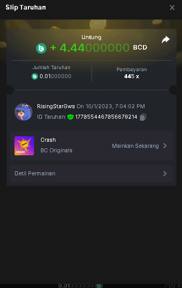 Moderator Giandreas Posted October 1, 2023 Moderator Share Posted October 1, 2023 Read Carefully Before Start To Hunt Forum Daily Challenges #374 CrashHunt : Crash Win the highest pay out Min Payout : x10 Min Level 4 ️Duration Starting : Now End time : 23.59 UTC Time How to Join? Make screenshot + paste your bet link + UID or Profile link Any coin, with min bet 0.01 USD is allowed (jb/bb/bcl not allowed) Reward Prizes 1st Place.....$7 BCD 2nd Place.....$5 BCD 3rd Place.....$4 BCD 4th Place.....$3 BCD 5th Place.....$2 BCD 🏵 Winners will be announcing next day after Roll Point! Link to comment Share on other sites More sharing options...