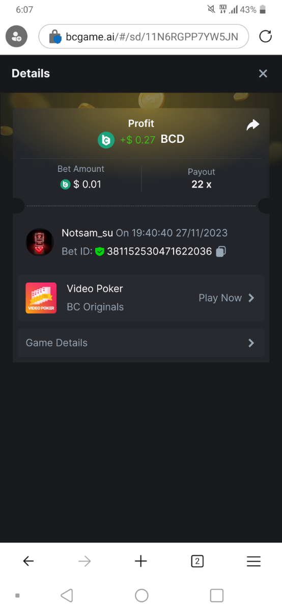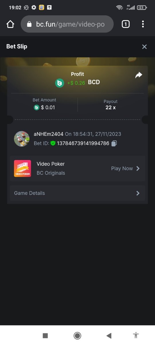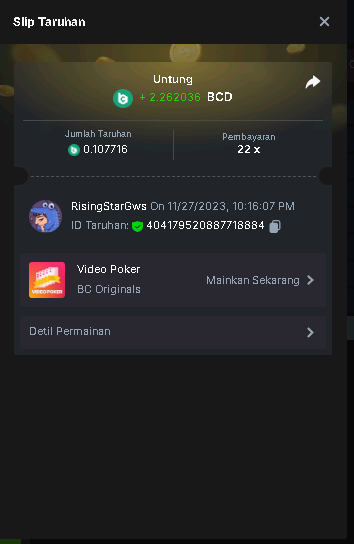 Moderator Giandreas Posted November 27, 2023 Moderator Share Posted November 27, 2023 Read Carefully Before Start To Hunt Forum Daily Challenges #431Hunt : Video Poker Win the highest pay out Min Payout : 6x Min Level 4️Duration Starting : Now End time : 23.59 UTC Time How to Join? Make screenshot + paste your bet link + UID or Profile link Any coin, with min bet 0.01 USD is allowed (jb/bb/bcl not allowed)Reward Prizes 1st Place.....$7 BCD 2nd Place.....$5 BCD 3rd Place.....$4 BCD 4th Place.....$3 BCD 5th Place.....$2 BCD 🏵 Winners will be announcing next day after Roll Point! Link to comment Share on other sites More sharing options...