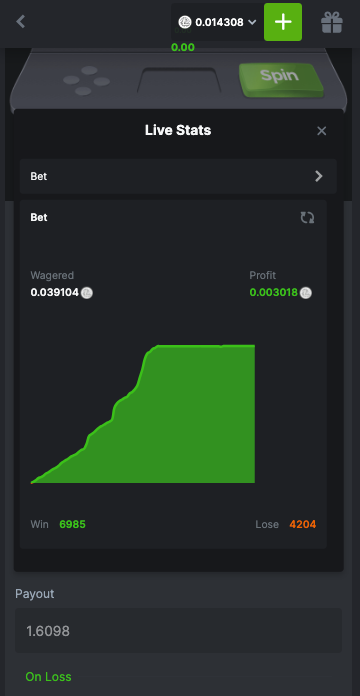 Penthesilea Posted January 31, 2024 Author Share Posted January 31, 2024 Hi.. Well if you are going to go with 100 euros/dollars, make your basebet for a start 0.001 instead of 0.0001. If you are using BCD then 0.001 would be a good start for your balance. It gives you enough room to endure the 8/9 losses. Now you can bet the minimum which is 0.0001 and set the payout to 1.8, that will of course improve your profits. How this strategy works is you go with the minimum and you can up your payout or you stay at the current payout and increase your bet. I normally stay at the 1.6, it works for me. The highest I went is 1.7, which is also not bad. It endures. Keep it at 1.6, set your basebet to 0.001, if that runs well and you encounter the 8-9 losses, take note of what amount was bet at that stage. If you have the more than adequate in the balance, you can up your bet to 0.01. Scenario 1. bb 0.0001, keep the strat as is. Scenario 2. bb 0.001, keep the strat as is. Scenario3. bb 0.01, change the first condition to 2 from 2.5. Keep everything else the same Scenario 4. increase the payout to 1.7 or 1.8, bb 0.01, set the first condition to 1.8. Remember to change the payout in the script from 1.6 to 1.7 or 1.8. Change is here if (config.onWin.value === 'reset') {currentBet = config.bet.value;config.payout.value =1.6098; } else { currentBet *= config.winMultiplier.value; as well as here var maximumPayout = 1.65; // Set your desired minimum payout value here A tip would be nice.. go to the chat, type @Altrea Pendragon and you will see /.. below the chat message box.. that's how you can send tips to anyone you want. Please let me know how you get on. PS.. i saw someone asked about restarting a script in previous thread.. I'll look it up and get back to you on those timeouts. Link to comment Share on other sites More sharing options...