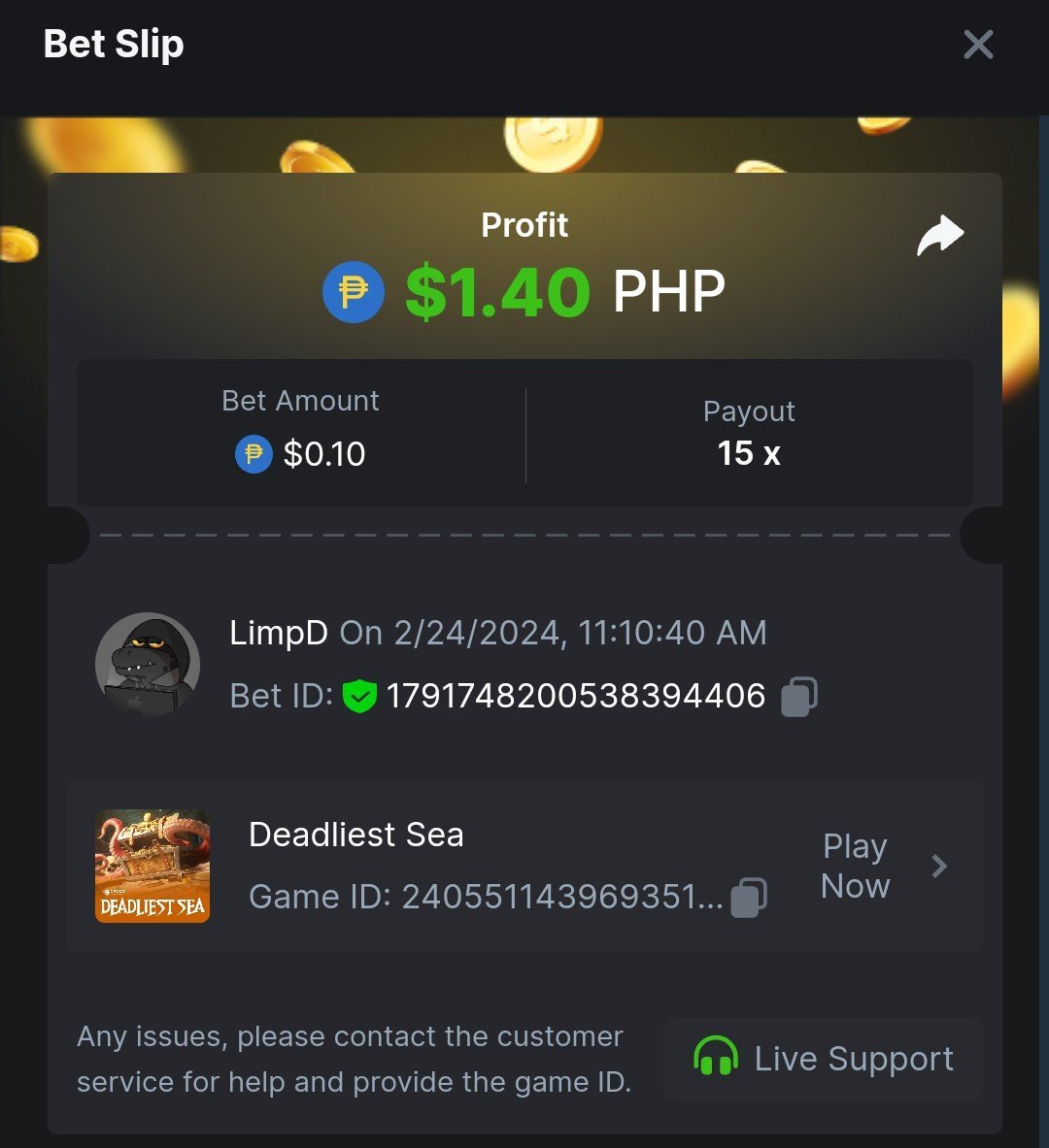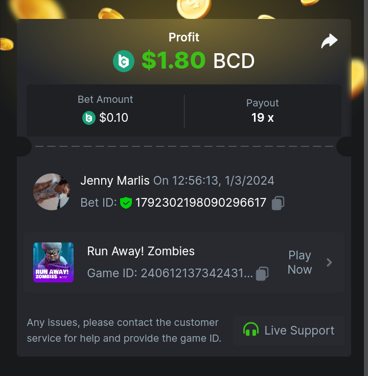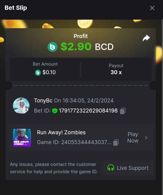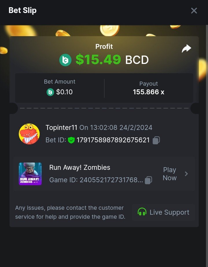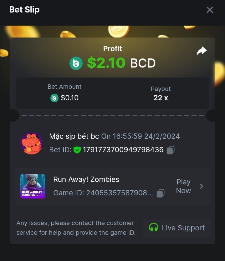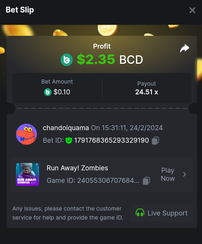 sloth Posted February 24, 2024 Share Posted February 24, 2024 Wizard`s Academy - 470.287x https://bc.game/#/sd/11TA6BMYKQZBNZ Deadliest Sea - 244.1748X https://bc.game/#/sd/11TA2PER3KQ1EB Dragon Quest - 240.1733x https://bc.game/#/sd/11TA3E2NJCAHZN 1 Link to comment Share on other sites More sharing options...
