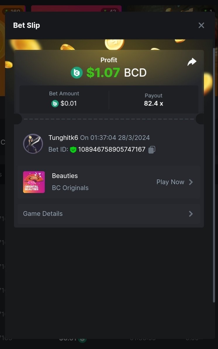 Moderator Giandreas Posted March 28, 2024 Moderator Share Posted March 28, 2024 Read Carefully Before Start To Hunt Forum Daily Challenges #553Hunt : Oriental Beauties Win the highest pay out Min Payout : 20x Min Level 10️Duration Starting : Now End time : 23.59 UTC Time How to Join? Make screenshot + paste your bet link + UID or Profile link Any coin, with min bet 0.01 USD is allowed (jb/bb/bcl not allowed)Reward Prizes 1st Place.....$7 BCD 2nd Place.....$5 BCD 3rd Place.....$4 BCD 4th Place.....$3 BCD 5th Place.....$2 BCD 🏵 Winners will be announcing next day after Roll Point! 1 Link to comment Share on other sites More sharing options...