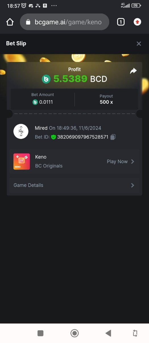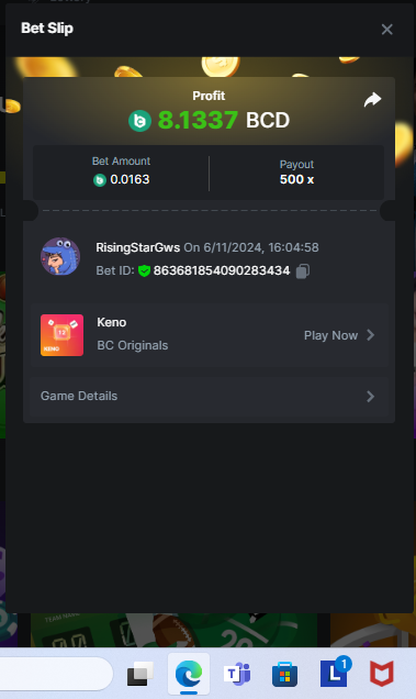 Moderator Giandreas Posted June 11, 2024 Moderator Share Posted June 11, 2024 Read Carefully Before Start To Hunt Forum Daily Challenges #628Hunt : Keno Win the highest pay out Min Payout : 90x Min Level 10️Duration Starting : Now End time : 23.59 UTC Time How to Join? Make screenshot + paste your bet link + UID or Profile link Any coin, with min bet 0.01 USD is allowed (jb/bb/bcl not allowed)Reward Prizes 1st Place.....$7 BCD 2nd Place.....$5 BCD 3rd Place.....$4 BCD 4th Place.....$3 BCD 5th Place.....$2 BCD 🏵 Winners will be announcing next day after Roll Point! 1 Link to comment Share on other sites More sharing options...