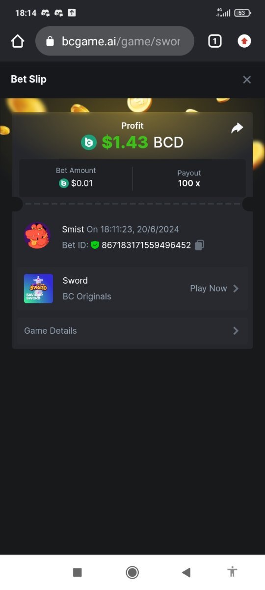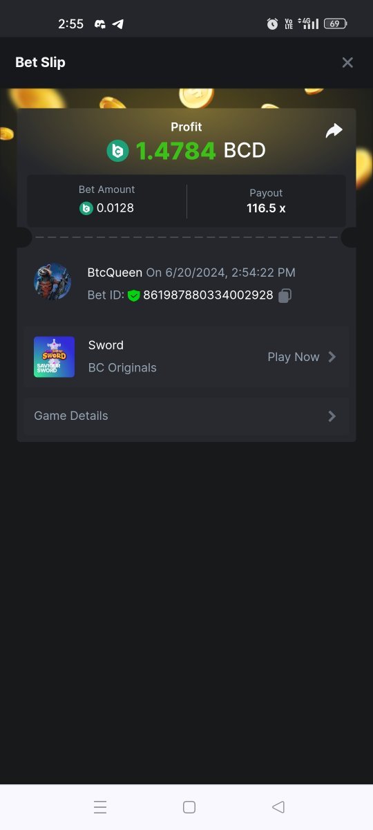 Moderator Giandreas Posted June 20, 2024 Moderator Share Posted June 20, 2024 Read Carefully Before Start To Hunt Forum Daily Challenges #637Hunt : Sword Win the highest pay out Min Payout : 20x Min Level 10️Duration Starting : Now End time : 23.59 UTC Time How to Join? Make screenshot + paste your bet link + UID or Profile link Any coin, with min bet 0.01 USD is allowed (jb/bb/bcl not allowed)Reward Prizes 1st Place.....$7 BCD 2nd Place.....$5 BCD 3rd Place.....$4 BCD 4th Place.....$3 BCD 5th Place.....$2 BCD 🏵 Winners will be announcing next day after Roll Point! Link to comment Share on other sites More sharing options...