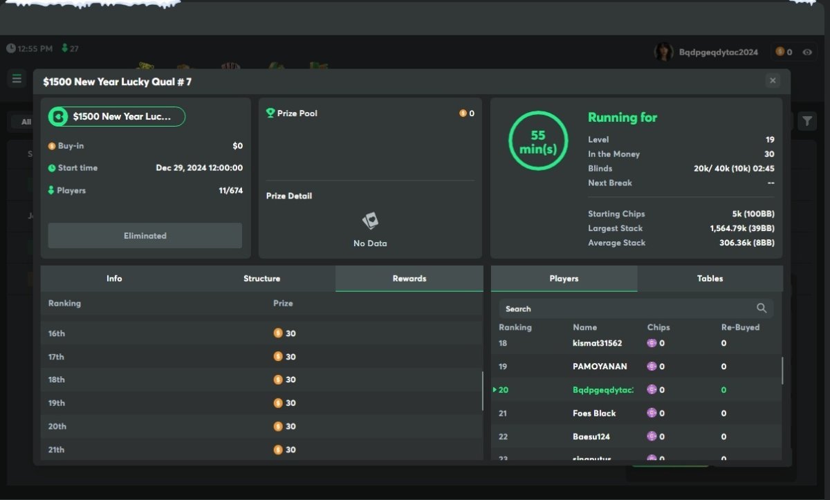 i win the contest on ranking of 20th, got a ticket for the 1500 dollars toumenent but, also the rewards list say i should have 30$ prize and i didn't get it at all, i also have a screenshot proof of that i deserve to get it.