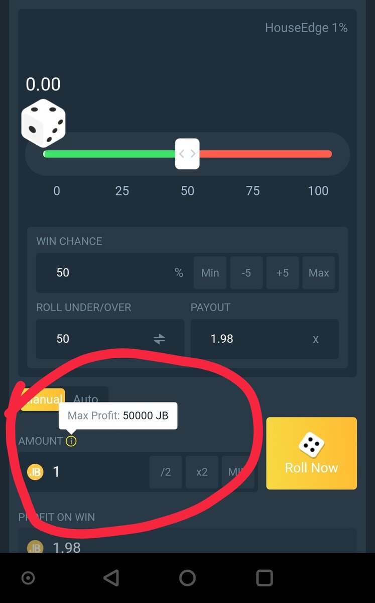 Fair point - We may consider adding a function to not allow you to roll if the profit amount exceeds the max profit for that particular coin. In the meantime, just double check and make sure that your potential profit amount isn't over 50k JB so you don't bet more than you can actually make.