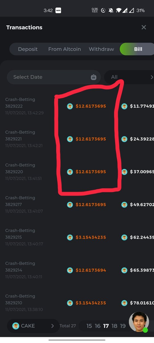 While betting crash It got hanged for 4 rounds and it ended up debiting my CAKE balance extra 3 times without consent 12.61x3==37$+