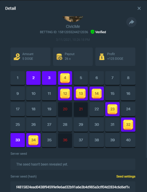 Admin BCGame_Bob Posted March 15, 2021 Author Admin Share Posted March 15, 2021 (edited) Hello Dear Participants, now time for results Keno Single Challenge winners 1. Hoya 15 TRX bet 2. CivicMe 5 Doge 3. GKD69 3.5 Doge All prizes will be distributed via PM. Also big thanks to those that took part but never won. Participation is more important than winning. Thank you again. Edited March 15, 2021 by Danny777 1 Link to comment Share on other sites More sharing options...