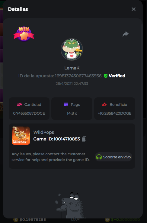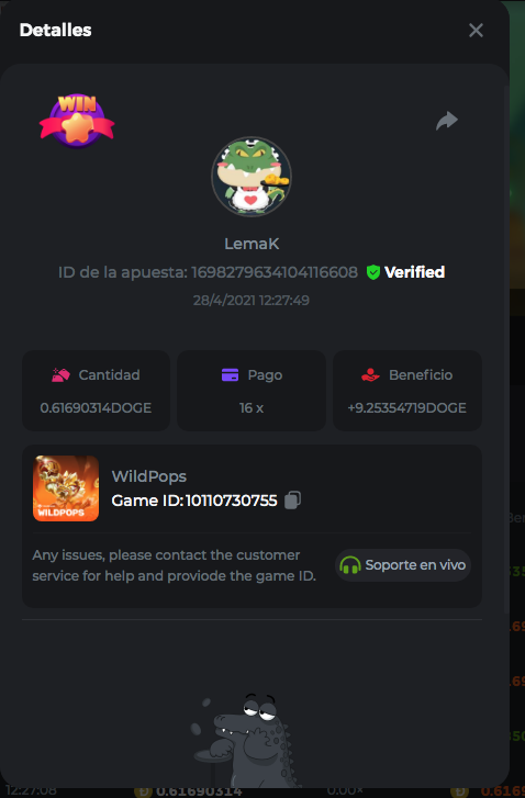 Dudewheresmycoin Posted April 26, 2021 Share Posted April 26, 2021 Here are my best results, so far 1) The Dog House - Game ID 60029370153 - Betting ID: 1698413996243135495 - Payout 243.15x 2) Loco the Monkey - Game ID 60032149910 - Betting ID: 1698415979334267399 - Payout 56x 3) WildPops - Game ID 9992306843 - Betting ID: 1698113370303719808 - Payout 74.70x Link to comment Share on other sites More sharing options...