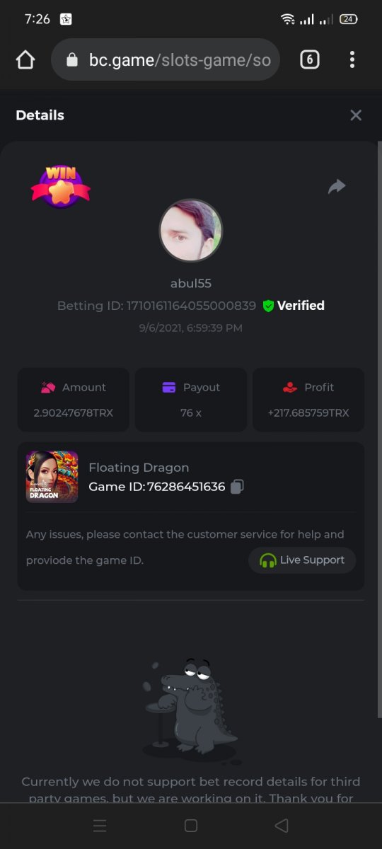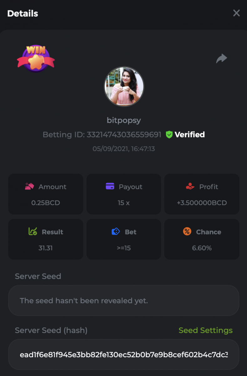 • In the same post, upload a screenshot of your win by clicking the game ID WITH VIEW IN USD mode ENABLED (accessible at the bottom of dropdown menu for your wallet up top. This way, we can ensure that your bet indeed met the minimum requirement at the time of placing it: