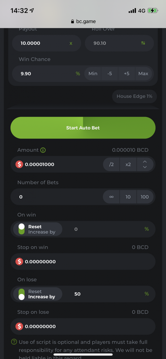 Kett Posted November 3, 2021 Share Posted November 3, 2021 Wanted to share few of the strategies I commonly use on dice bets. Ill consider uploading few more if you guys like my strategies. **WARNING** All of my strategies are very high volatile. Its important to Test out using minimum bet amount first. 1. Payout:6x On Win increase by 500% On lose Reset **Stop on profit bet amount x 35000 In this strategy we are aiming for 6 Wins in a row which will pay x77,000 of your original bet size. **always turn on stop on profit for this strategy otherwise it will not work!! 2. Payout: 10x On win Reset On lose increase by 20% to 50% this is one of my favourite strategy. From $10 to $500 in 10min in a good run I generally increase 50% on every lose. But if you think its too risky 20% will bring decent profit. Link to comment Share on other sites More sharing options...