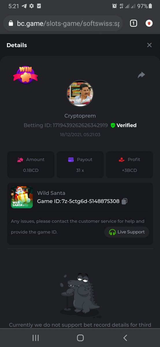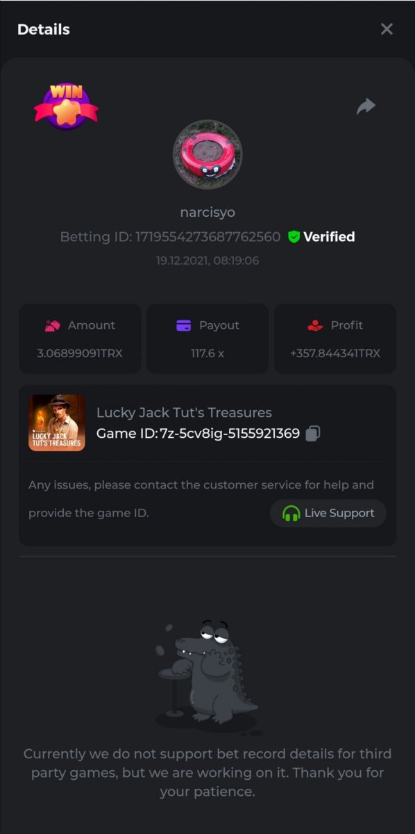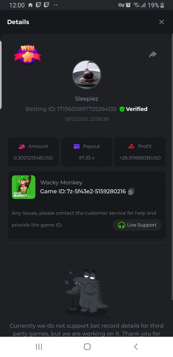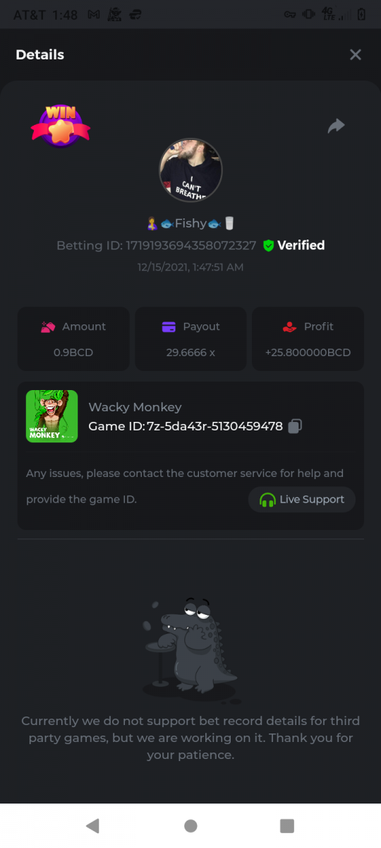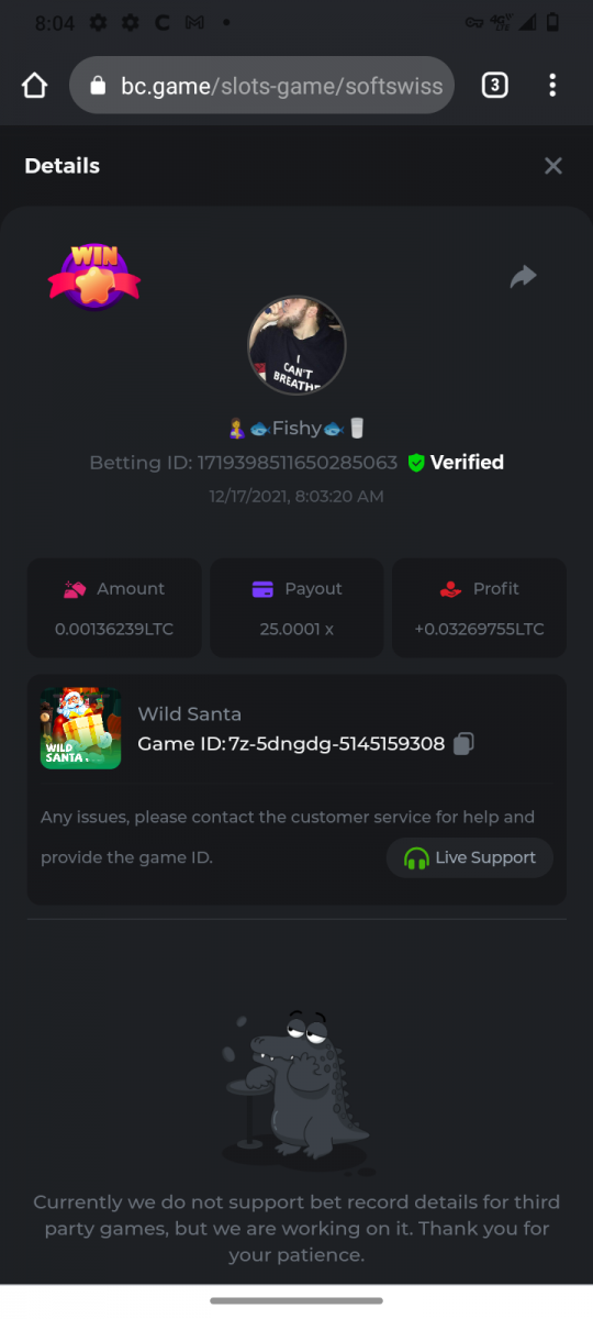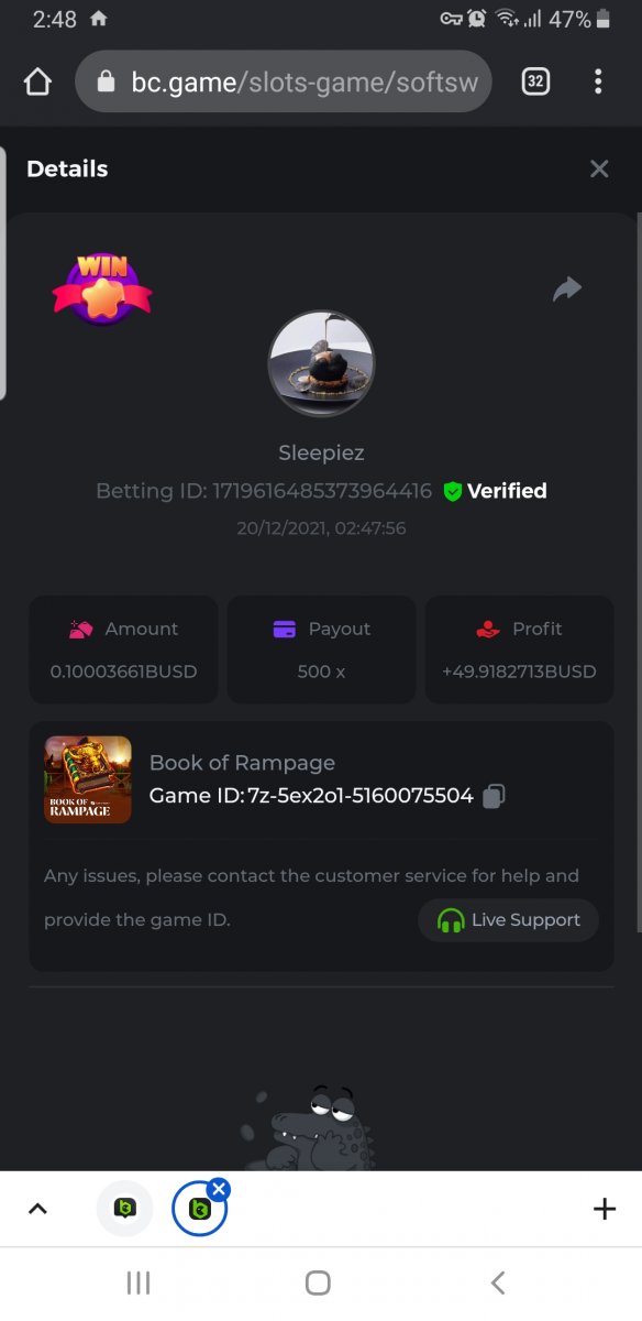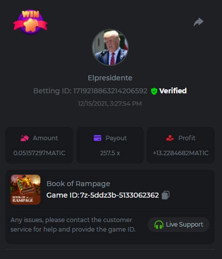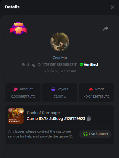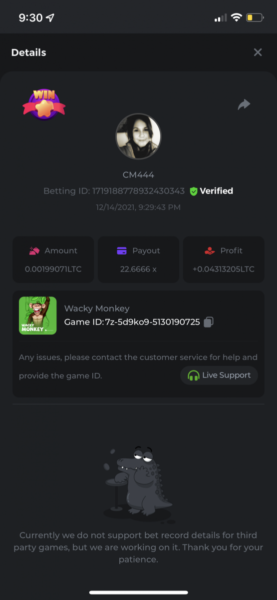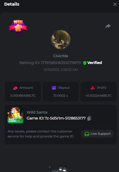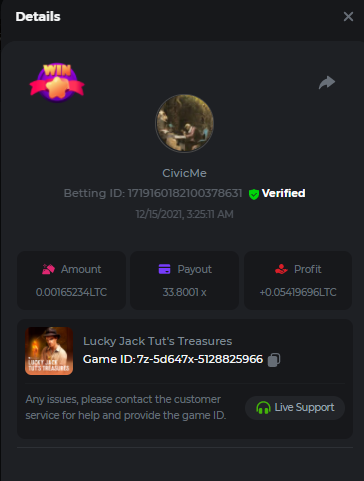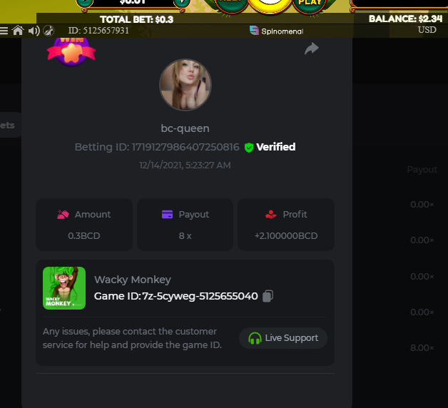• In the same post, upload a screenshot of your win by clicking the game ID WITH VIEW IN USD mode ENABLED (accessible at the bottom of dropdown menu for your wallet up top. This way, we can ensure that your bet indeed met the minimum requirement at the time of placing it: