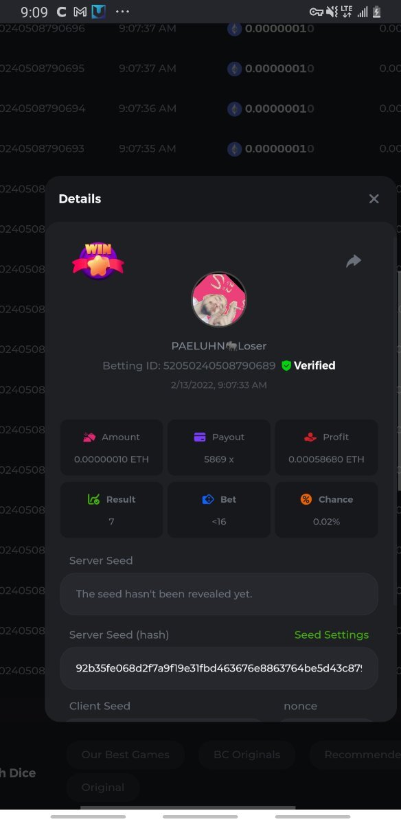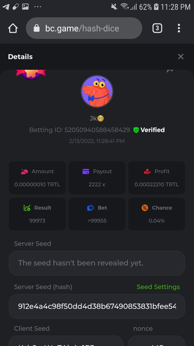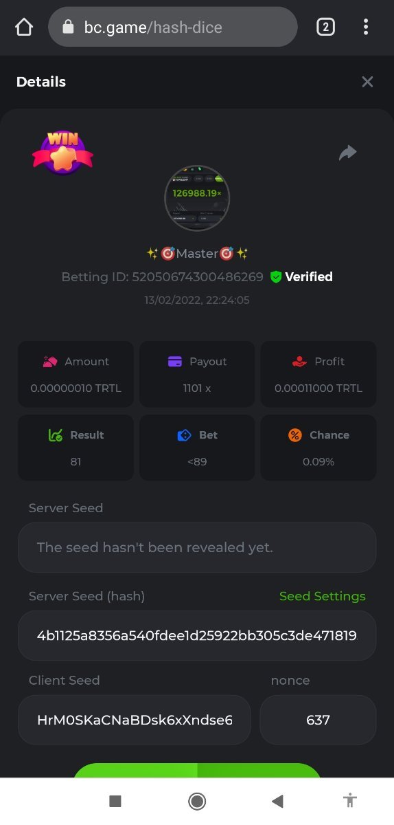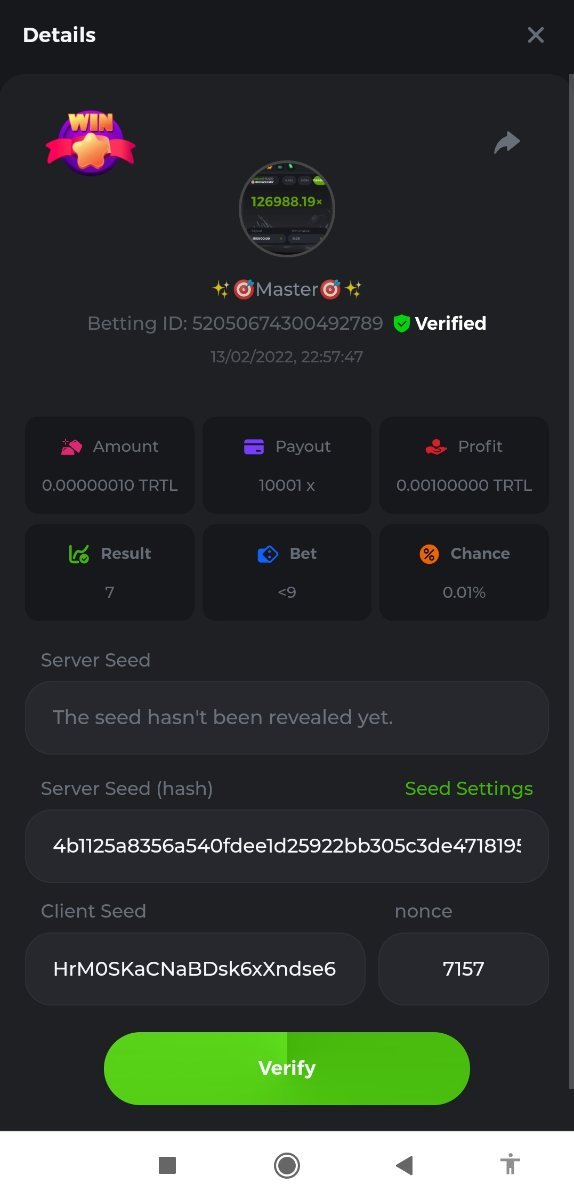 ThePersonYouLove Posted February 13, 2022 Share Posted February 13, 2022 1 minute ago, amirhaji said: Betting ID:11311264525454240 i got 29900x but i missed click to stop it u 1st Link to comment Share on other sites More sharing options...