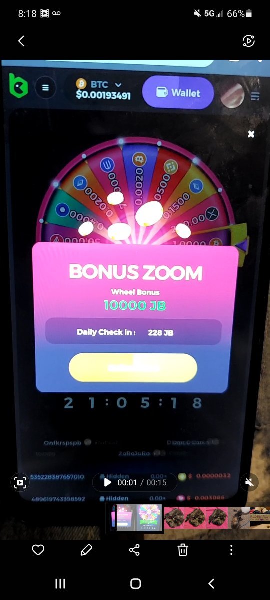 I have video proof that my free spin landed on 1btc but i was awarded the 1000jb instead. It's not letting me share the video.  But you can see the pointer is on 1btc