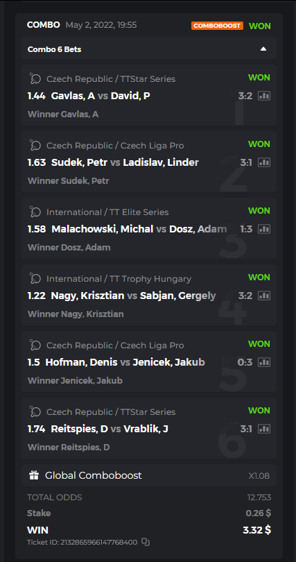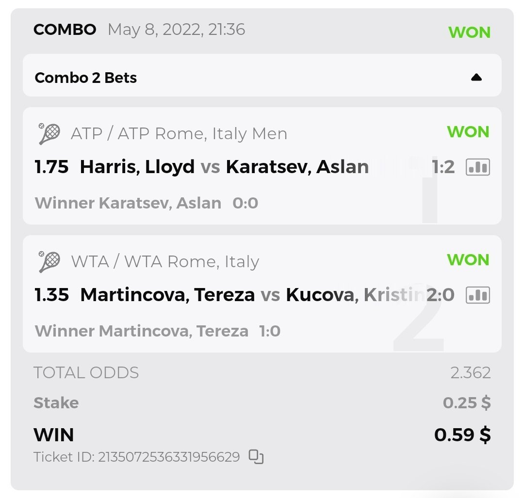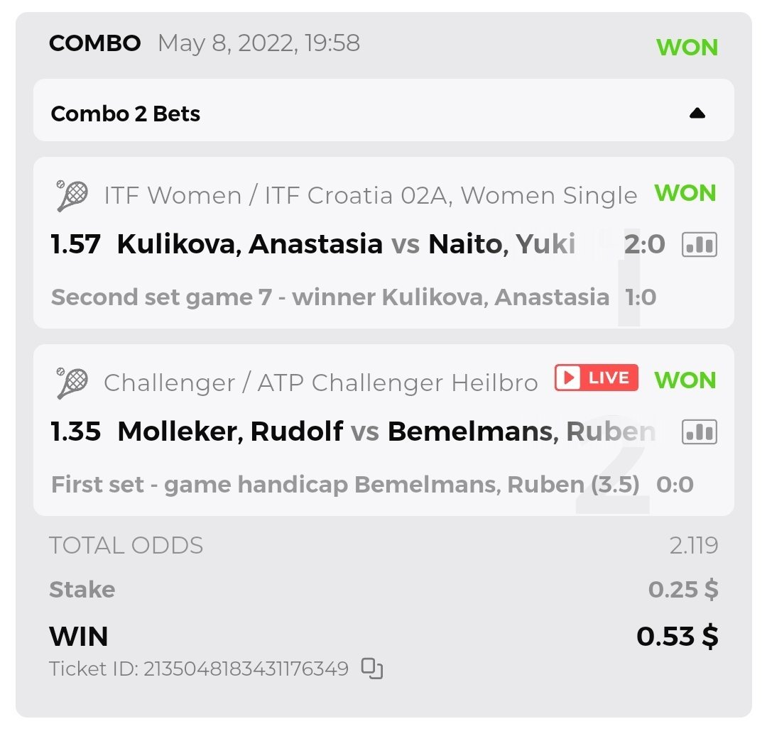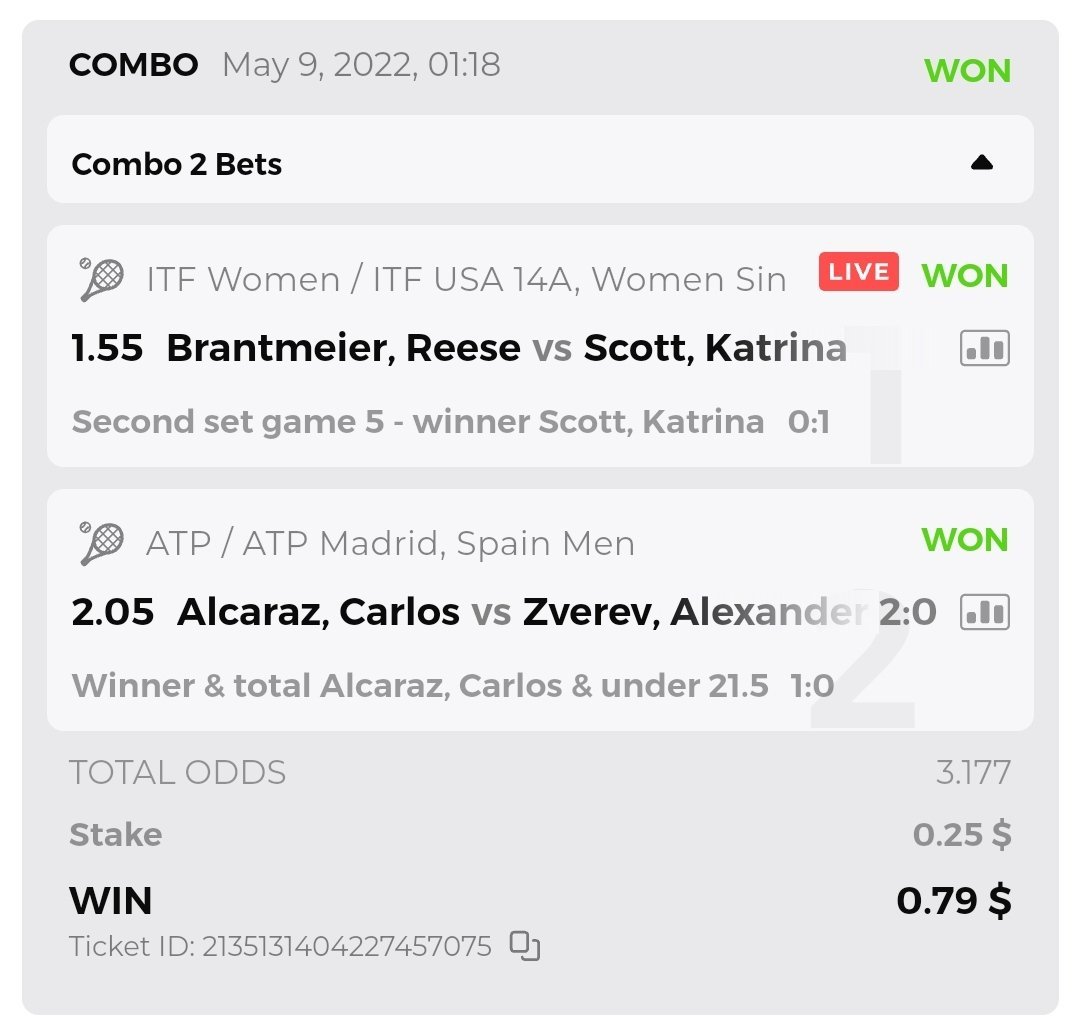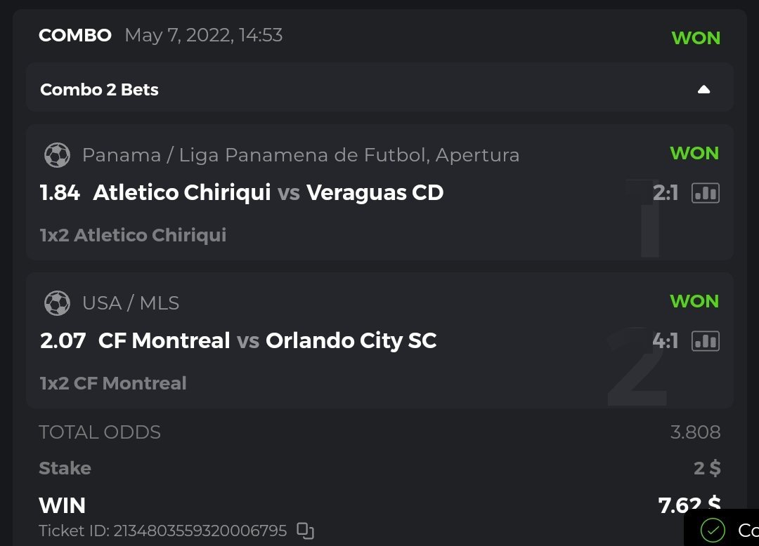 Moderator Mat Posted May 3, 2022 Author Moderator Share Posted May 3, 2022 4 hours ago, ITUS said: 2132817117563720086 2132869508724039853 2132555251000156421 2132435812397224839 2133279790403293460 2133195078519361694 2133299555356254211 2133191419404361778 This type of bet does not qualify for the event! Place a combo bet to qualify! Good luck! Link to comment Share on other sites More sharing options...