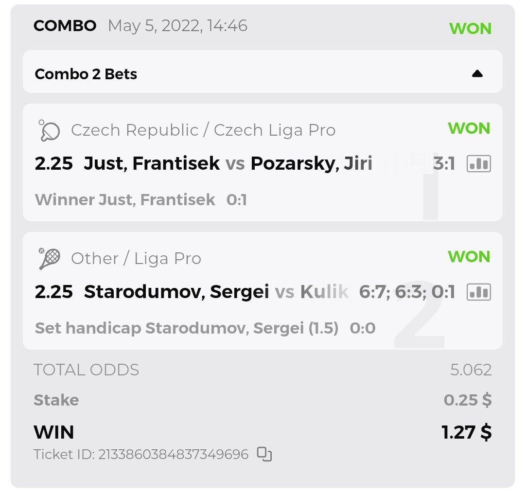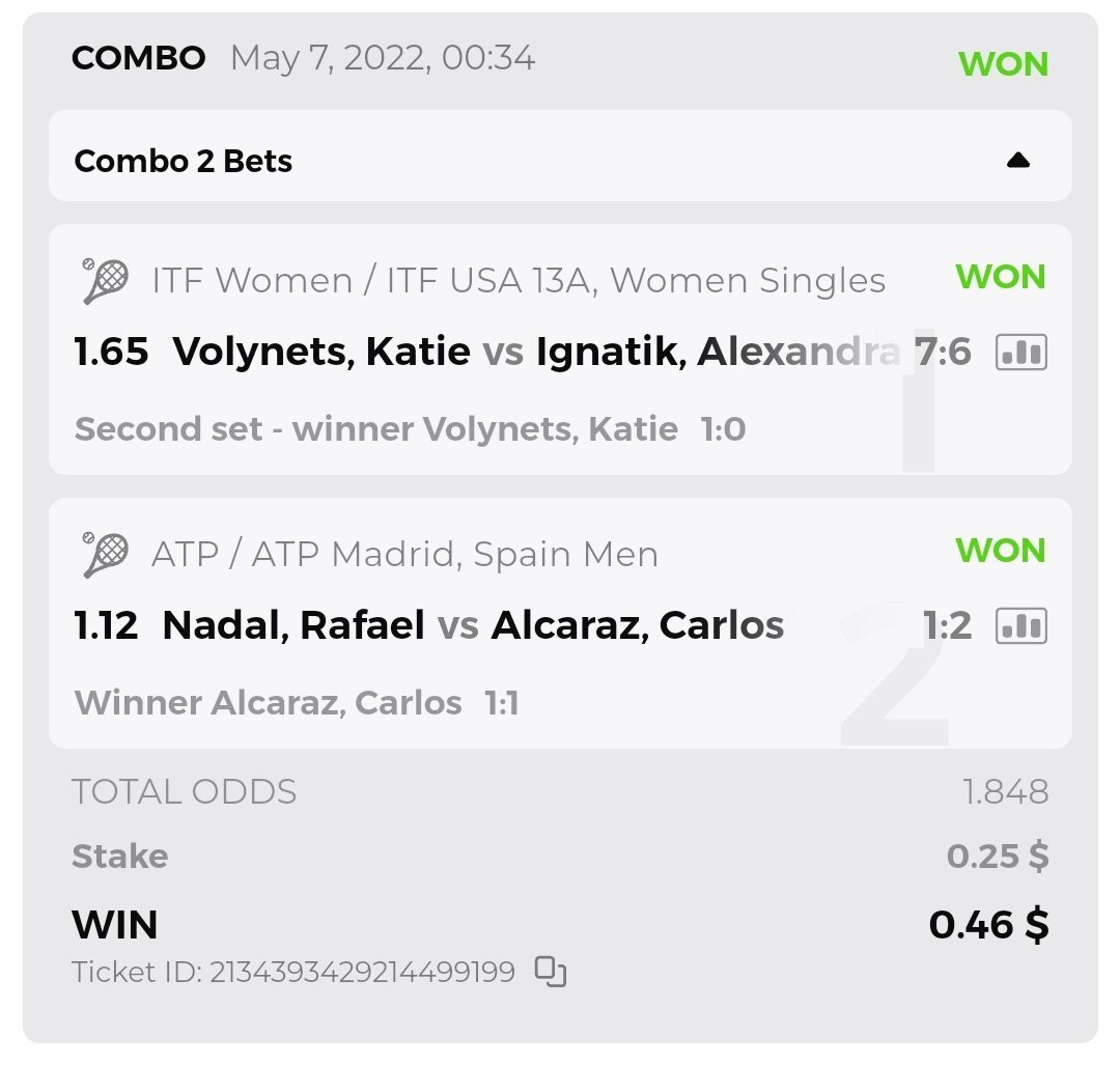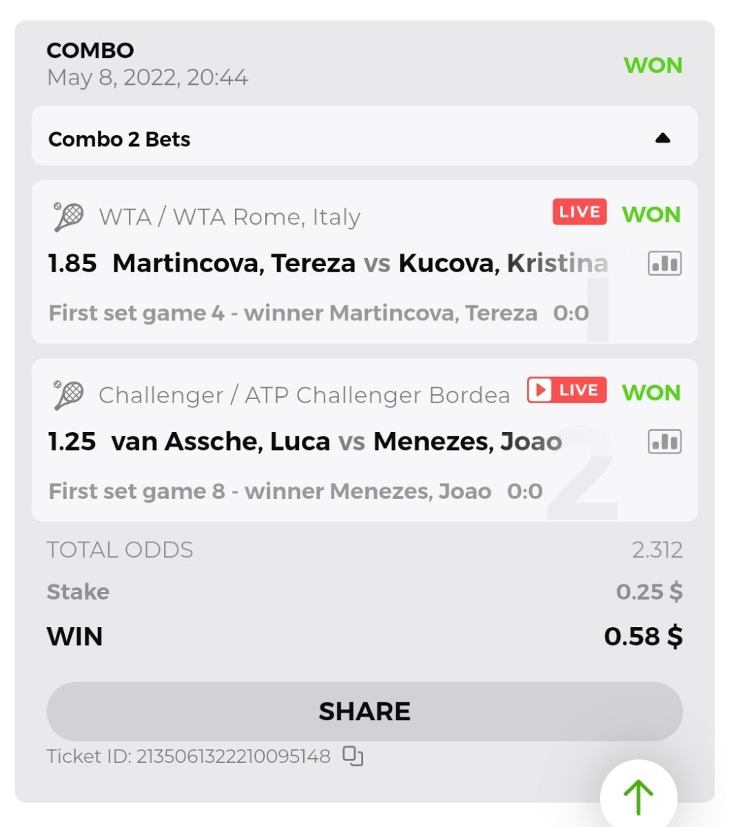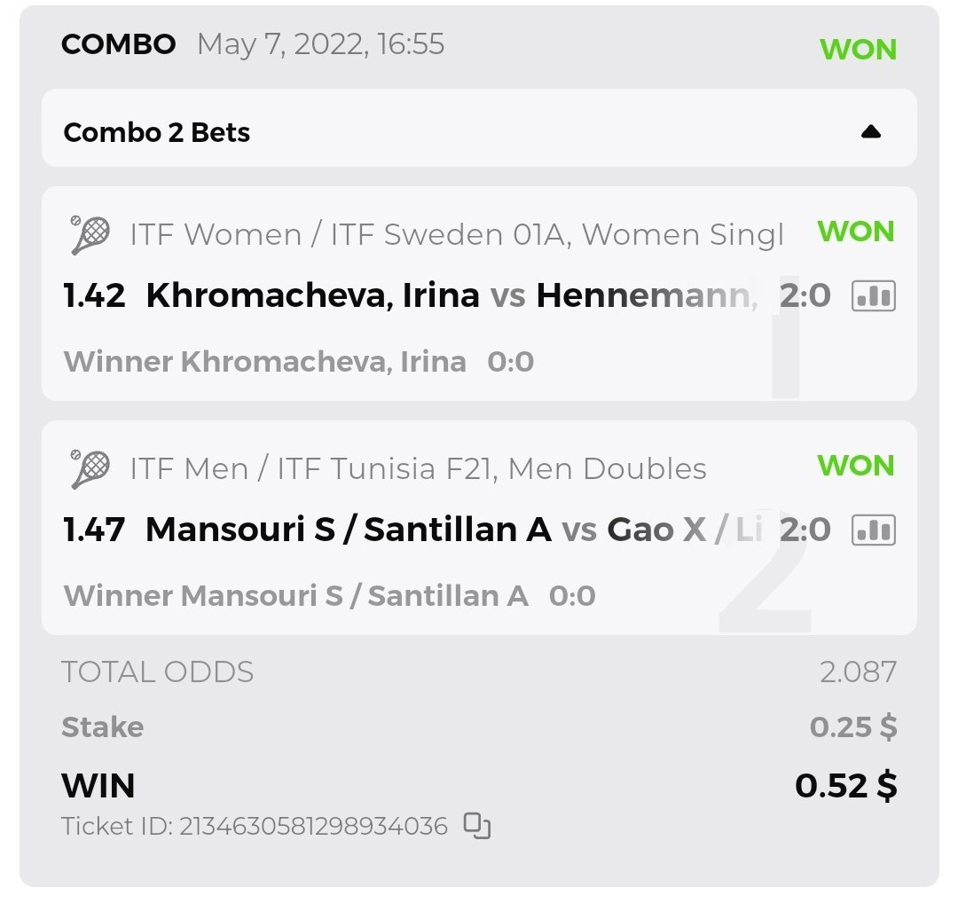 Moderator Mat Posted May 3, 2022 Author Moderator Share Posted May 3, 2022 4 hours ago, ITUS said: 2132817117563720086 2132869508724039853 2132555251000156421 2132435812397224839 2133279790403293460 2133195078519361694 2133299555356254211 2133191419404361778 This type of bet does not qualify for the event! Place a combo bet to qualify! Good luck! Link to comment Share on other sites More sharing options...