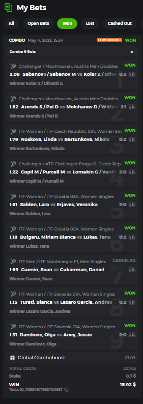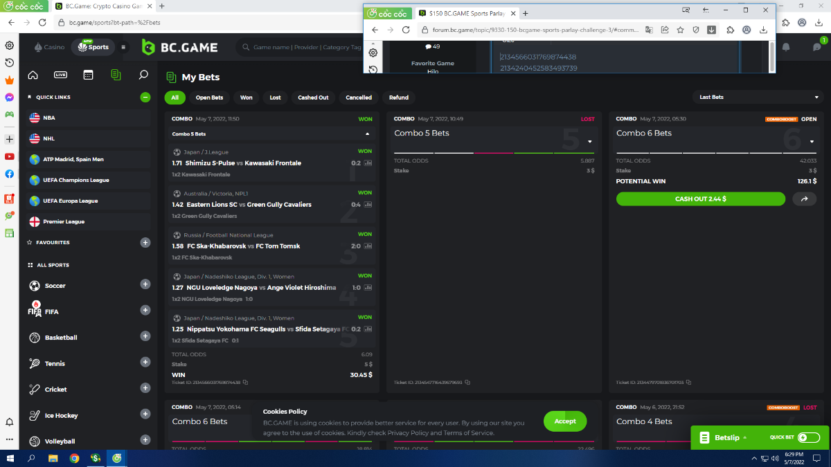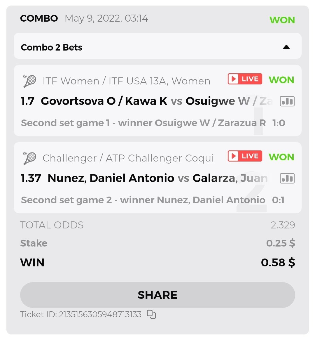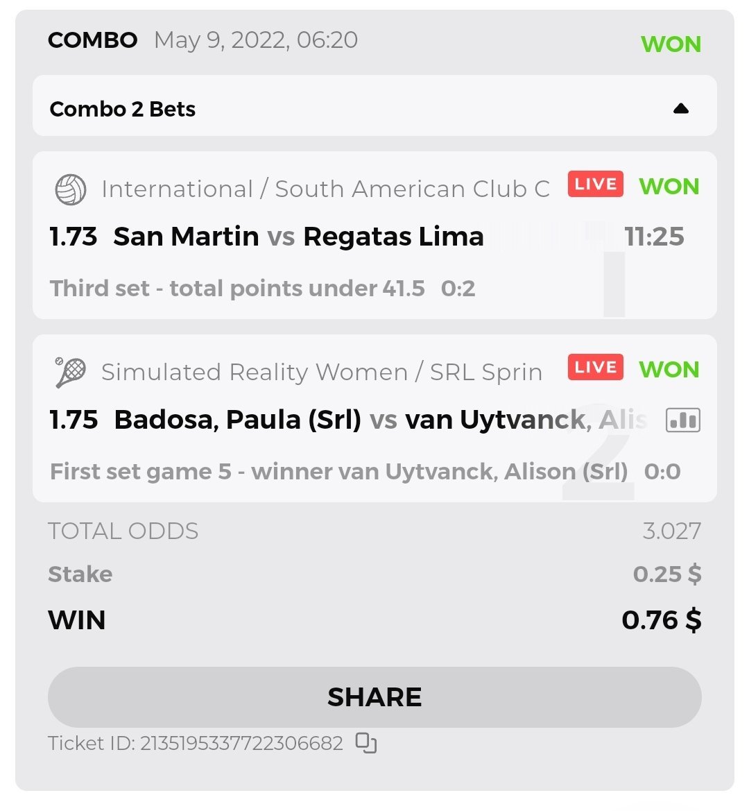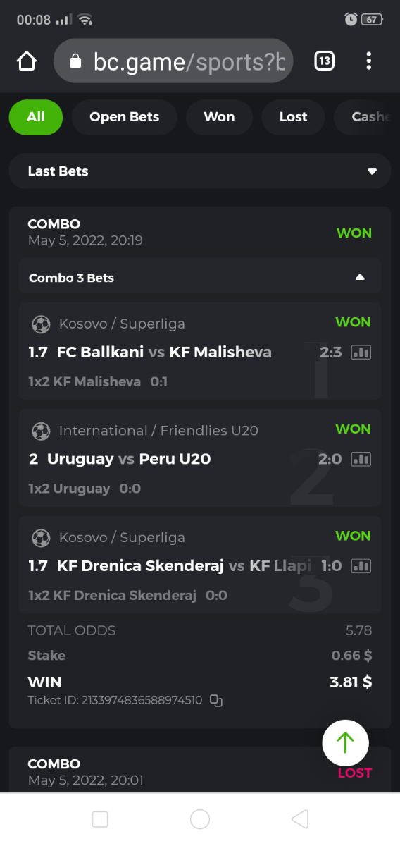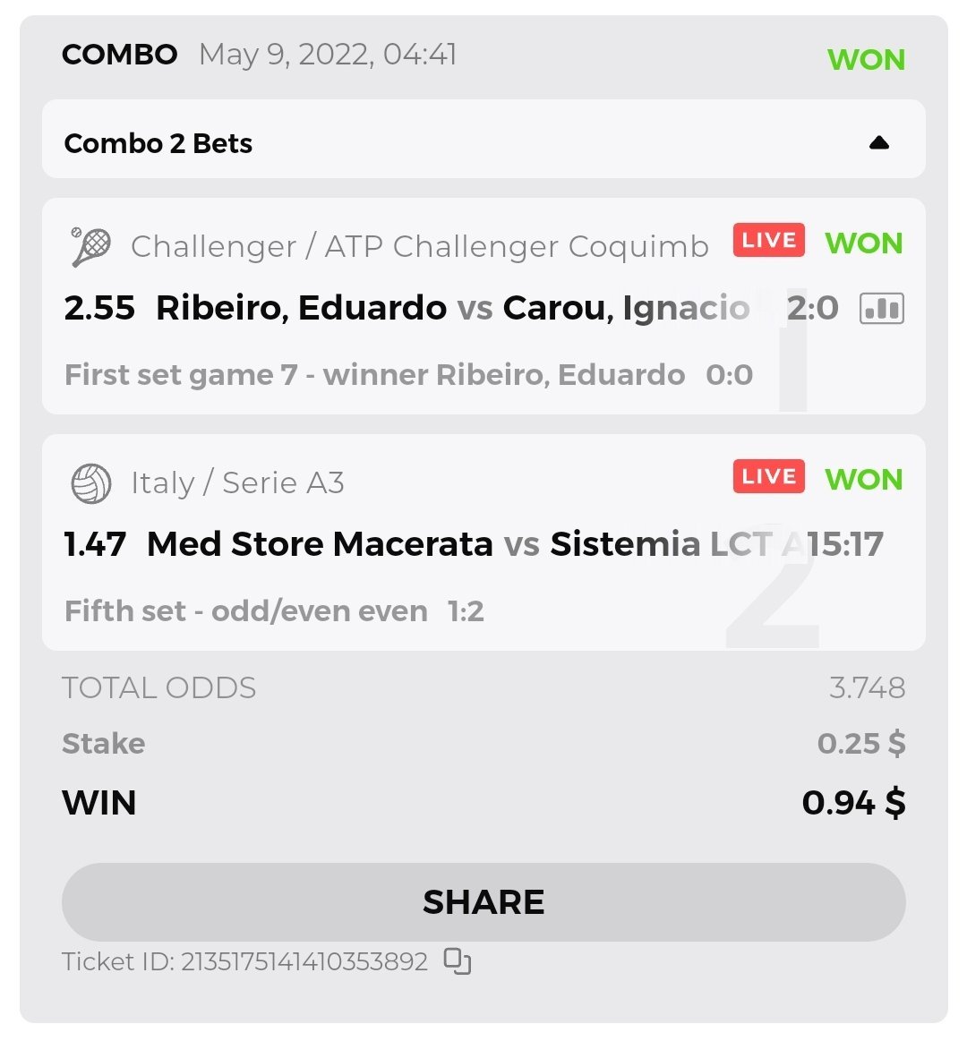 AlanMDC4 Posted May 3, 2022 Share Posted May 3, 2022 On 5/1/2022 at 8:48 PM, Edu05 said: BC.GAME SPORTS PARLAY CHALLANGE #3 Start: 1, May 13:00pm GMT Ends: 8, May 13:00 GMT Welcome to BC.GAME SPORTS PARLAY CHALLENGE with a prize pool of $150! Check below the full terms and conditions and how you can win these rewards! What is the challenge? Place a Sports Parlay/Combo Bet to qualify for the challenge. A parlay consists of two or more sports bet in a single slip with higher multiplier. Highest parlay multiplier wins the challenge. Visit https://bc.game/sports to make your parlay selections. Minimum VIP No Minimum VIP Level Minimum payout There is no minimum multiplier, however, only the top 10 winning parlay multipliers will win a prize! Minimum Bet Size $0.25 USD equivalent Eligible Coins All cryptocurrencies are eligible (excepting JB, and BCL) Available Prizes 1st Place....... $502nd Place..... $303rd Place...... $254th Place......$155th Place......$10 6th-10th.........$5 How to Enter: To participate, copy the Betslip Ticket ID of your parlay and post it as a reply to this thread as follows: Ticket ID: 2126602890796736992 Along with the screenshot of your parlay slip. Ticket ID: 2126602890796736992 If a selection results in a void or push, the bet will remain eligible as long as it remains equal to or greater than a triple bet and meets the odds requirements. Cashed out bets will not be counted. Please combine all of your hits together in a SINGLE post. Edit your existing post for additional hits, don't create a new post. Bets must be made during the specified time window stated above. This thread will lock automatically when the time period is over. One (1) entry per family. If someone finds multiple prizes, they will be disqualified from the challenge, as well as from all future challenges. Failure to comply with the instructions will result in your submission being void. By entering this challenge, you acknowledge that BC.Game has final decision rights over results and placement. All prizes will be paid out in BCD within 72 hours of completing the challenge. Does it have to be a combo bet to join, single bet is not allowed on this challenge? Any sports bet is allowed right? Link to comment Share on other sites More sharing options...